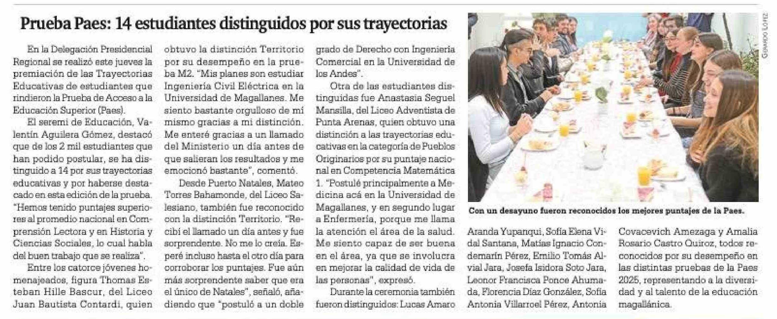 Prueba Paes: 14 estudiantes distinguidos por sus trayectorias
