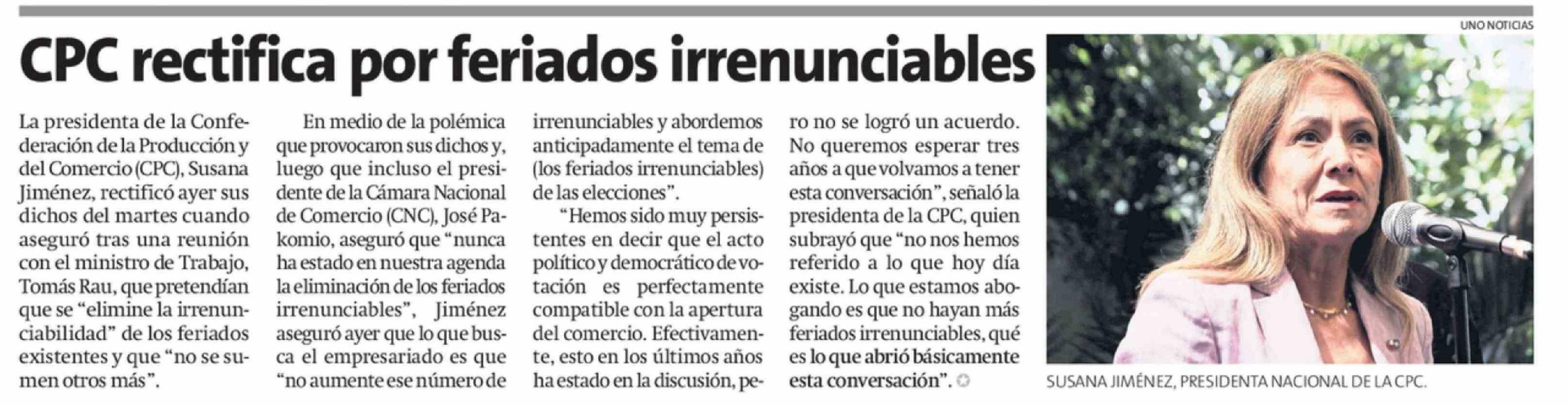 CPC rectifica por feriados irrenunciables