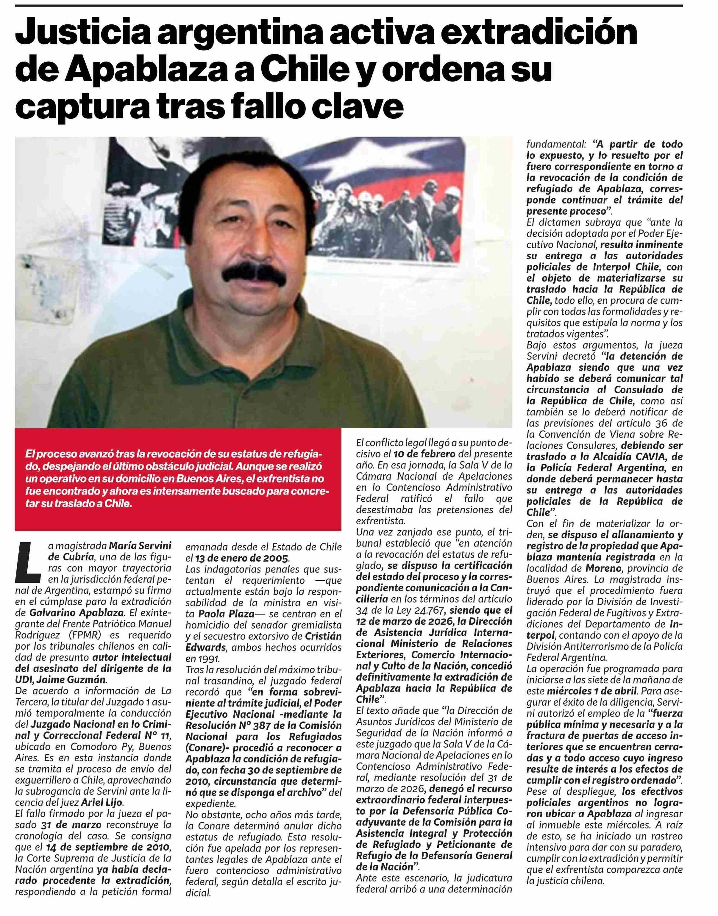 Justicia argentina activa extradición de Apablaza a Chile y ordena su captura tras fallo clave