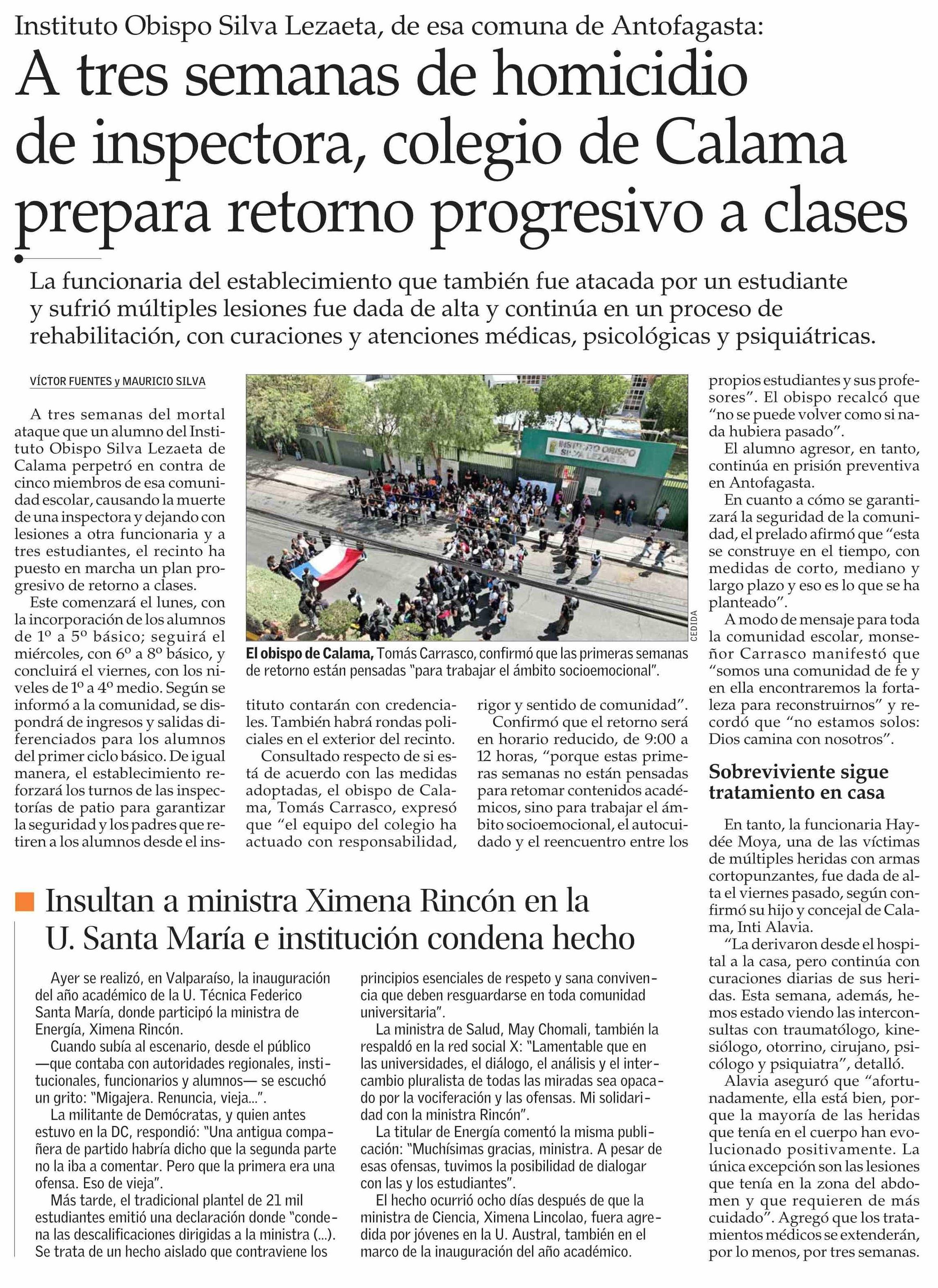 A tres semanas de homicidio de inspectora, colegio de Calama prepara retorno progresivo a clases