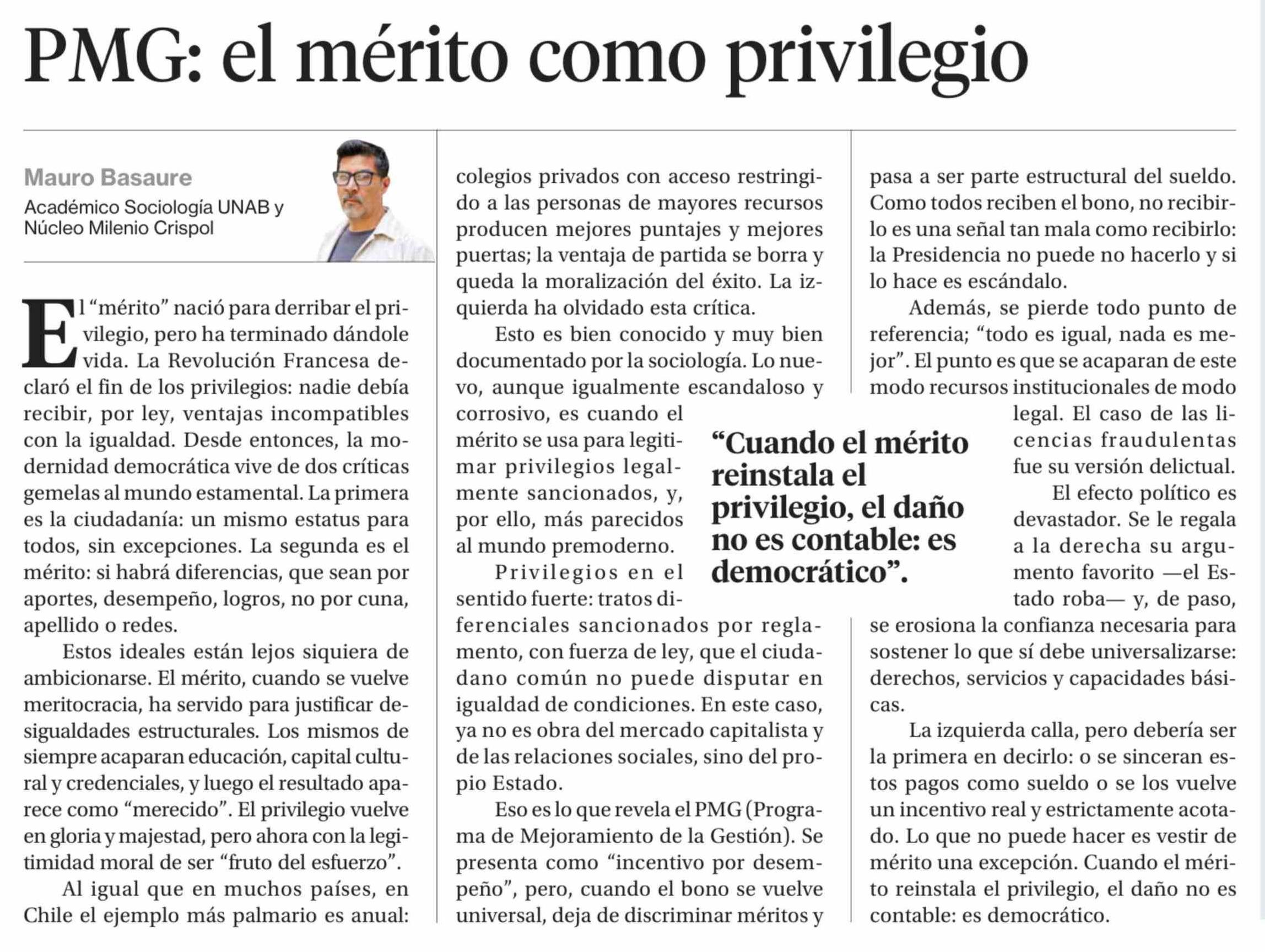 Columnas de Opinión: PMG: el mérito como privilegio