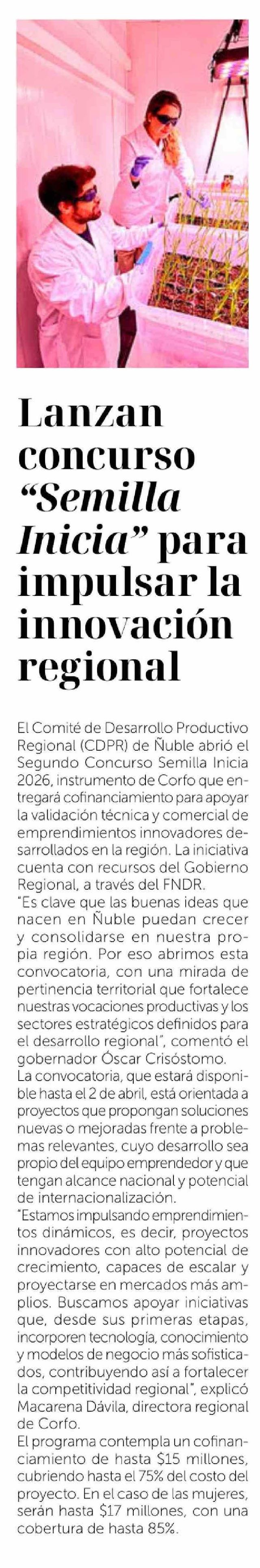 Lanzan concurso "Semilla Inicia" para impulsar la innovación regional