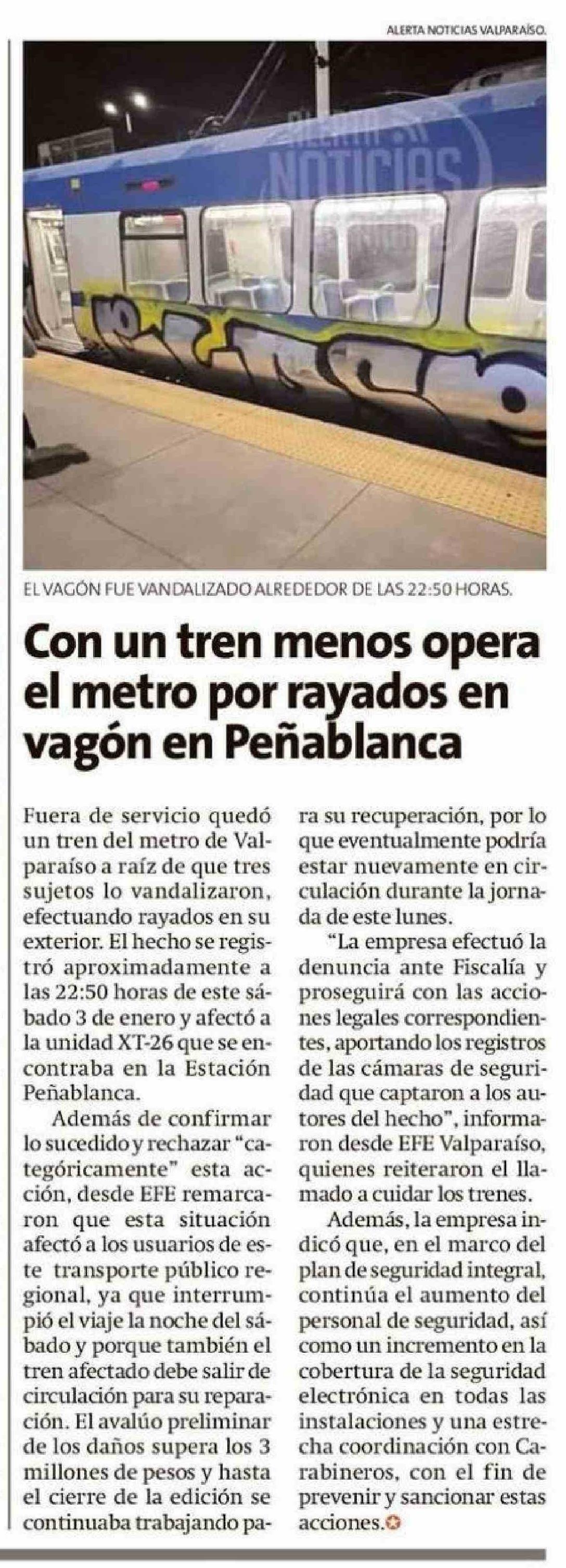 Con un tren menos opera el metro por rayados en vagón en Peñablanca