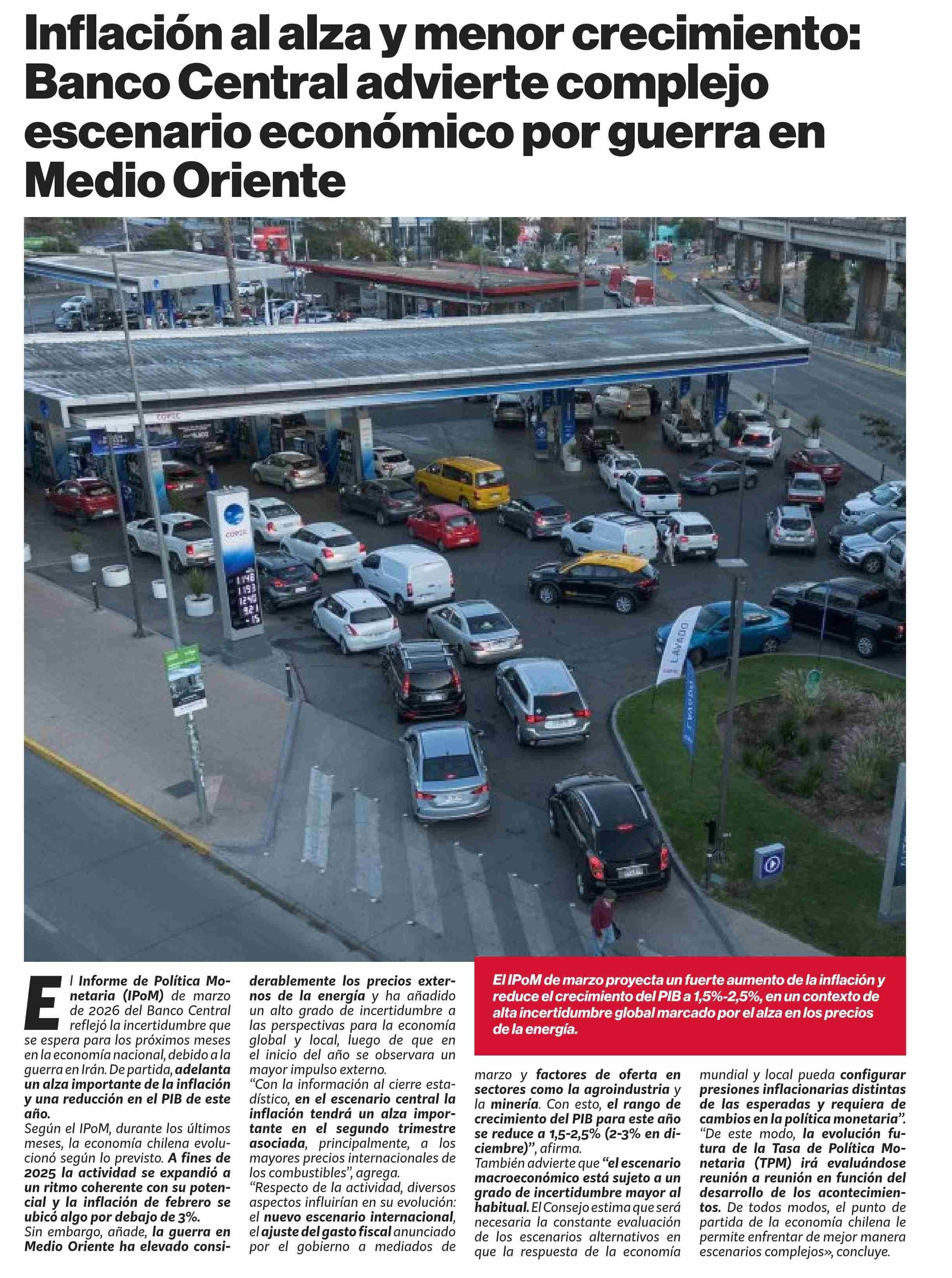Título: Inflación al alza y menor crecimiento: Banco Central advierte complejo escenario económico por guerra en Medio Oriente