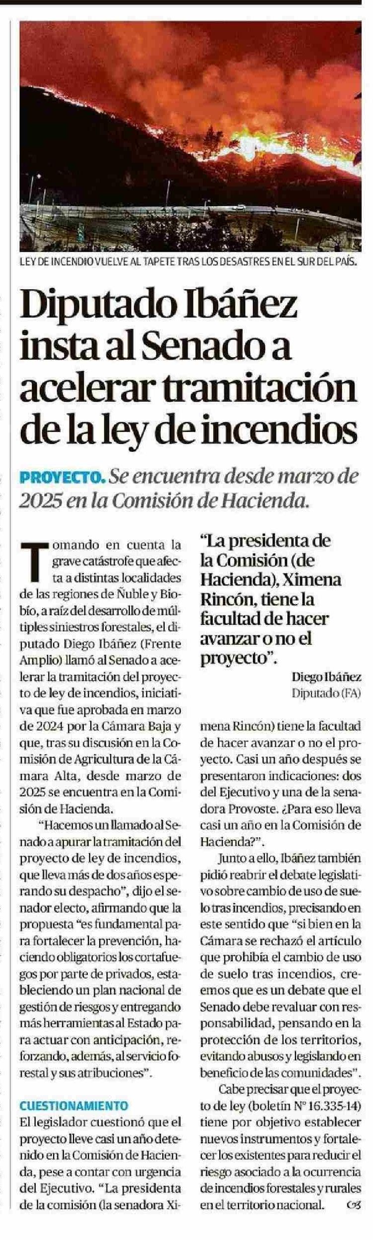 Diputado Ibáñez insta al Senado a acelerar tramitación de la ley de incendios