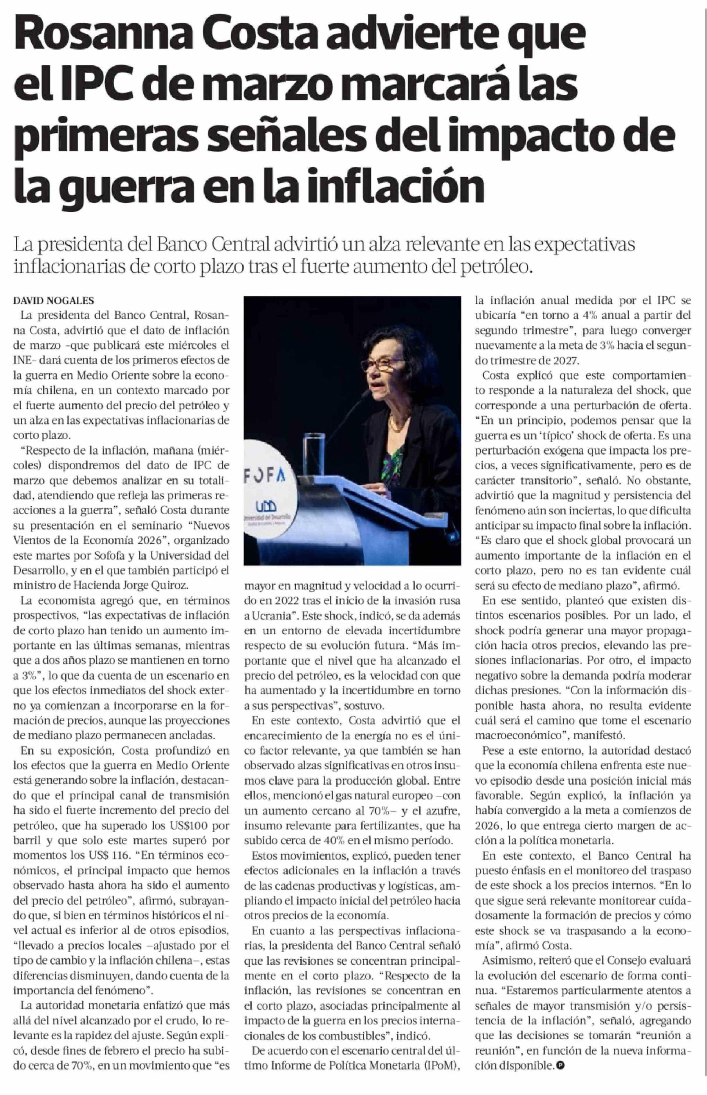 Rosanna Costa advierte que el IPC de marzo marcará las primeras señales del impacto de la guerra en la inflación