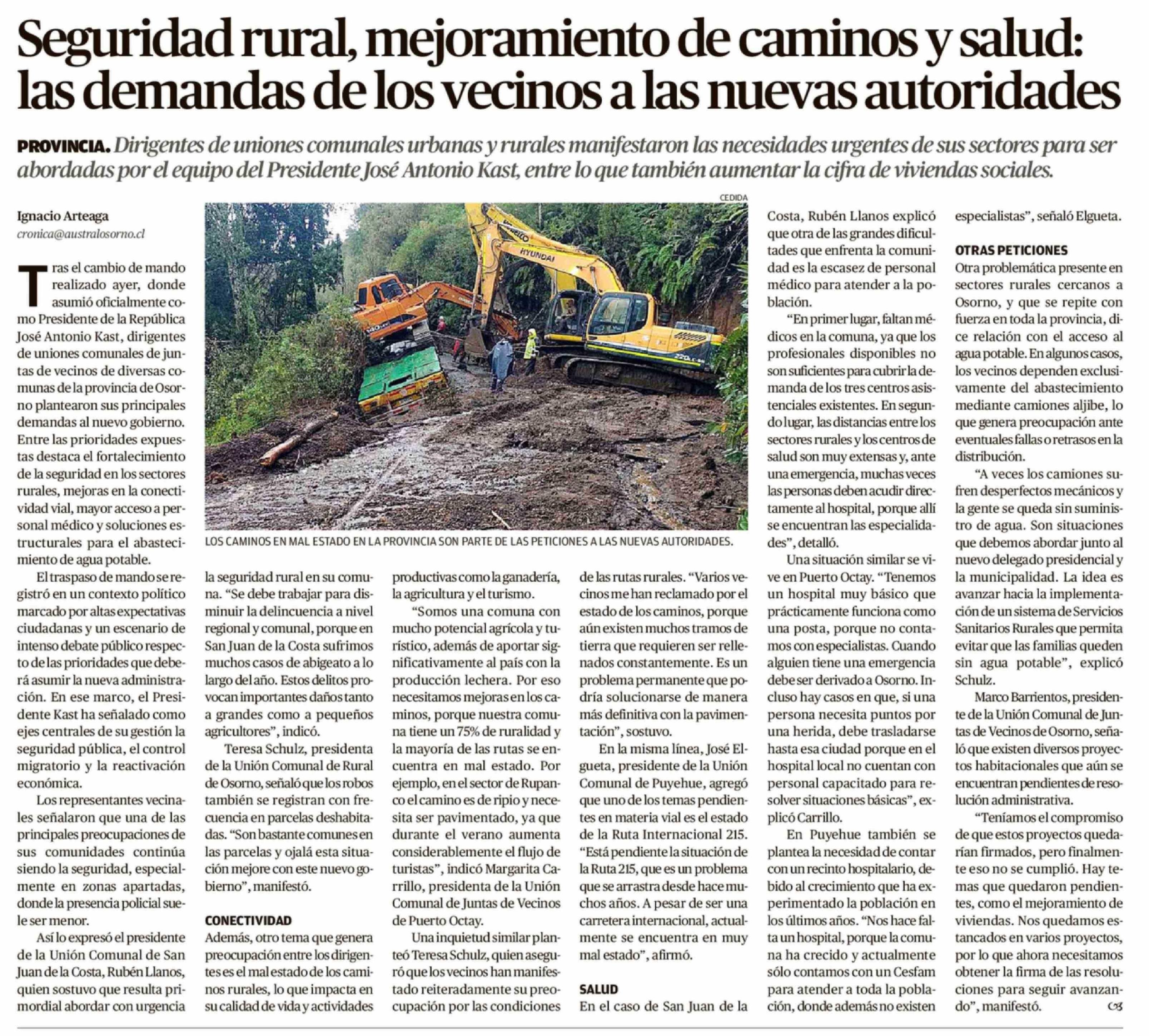 Seguridad rural, mejoramiento de caminos y salud: las demandas de los vecinos a las nuevas autoridades