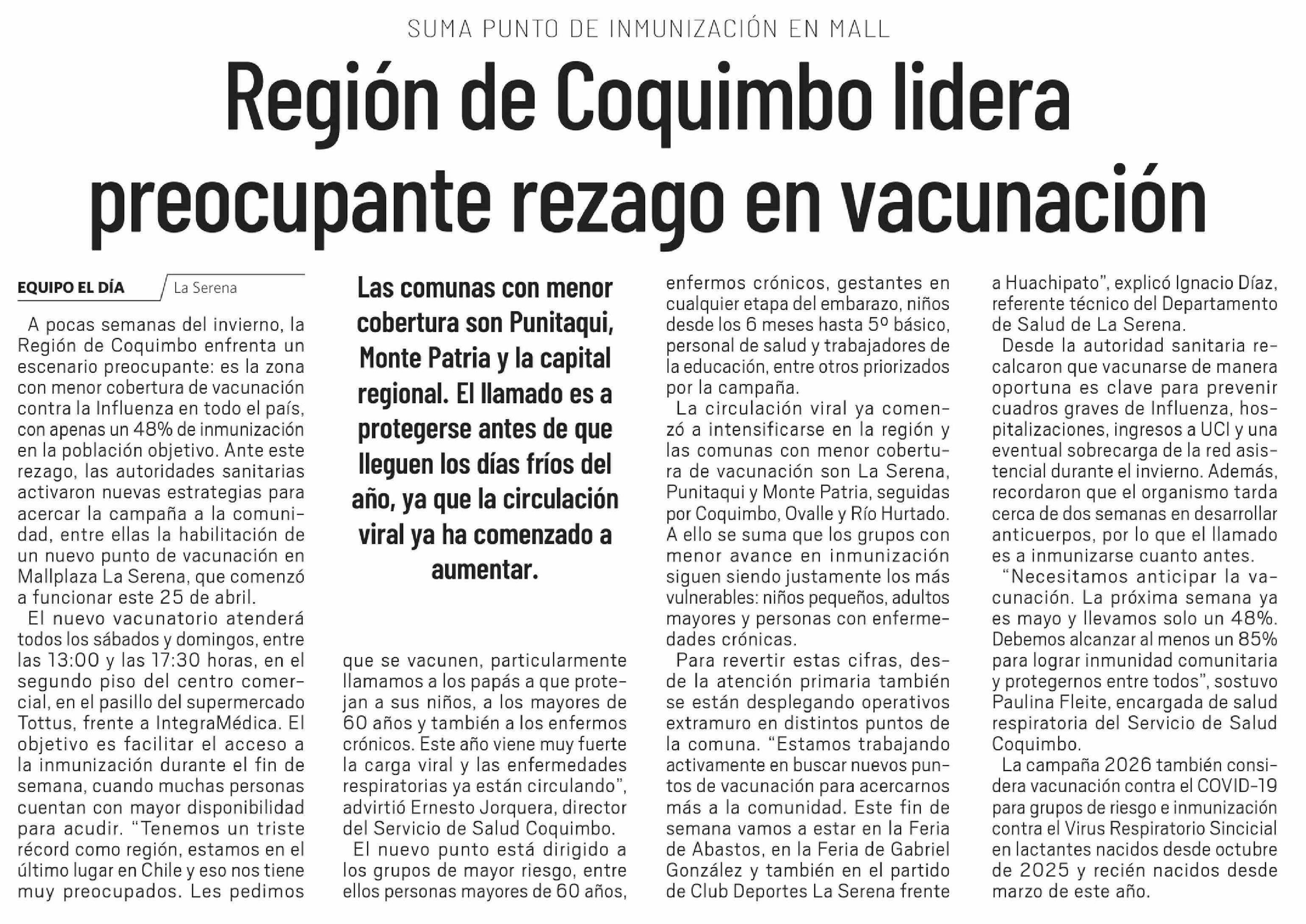 Título: Región de Coquimbo lidera preocupante rezago en vacunación