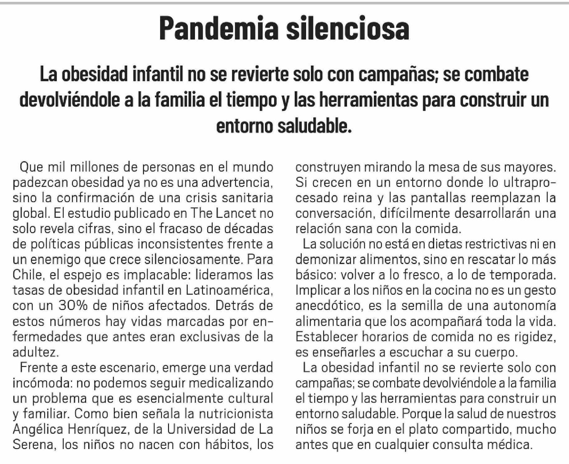 Editorial: Pandemia silenciosa