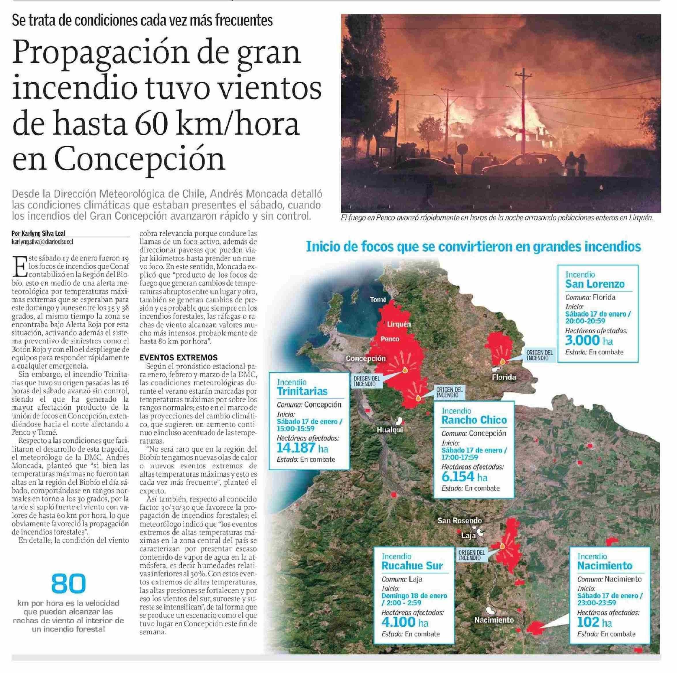 Propagación de gran incendio tuvo vientos de hasta 60 km/hora en Concepción