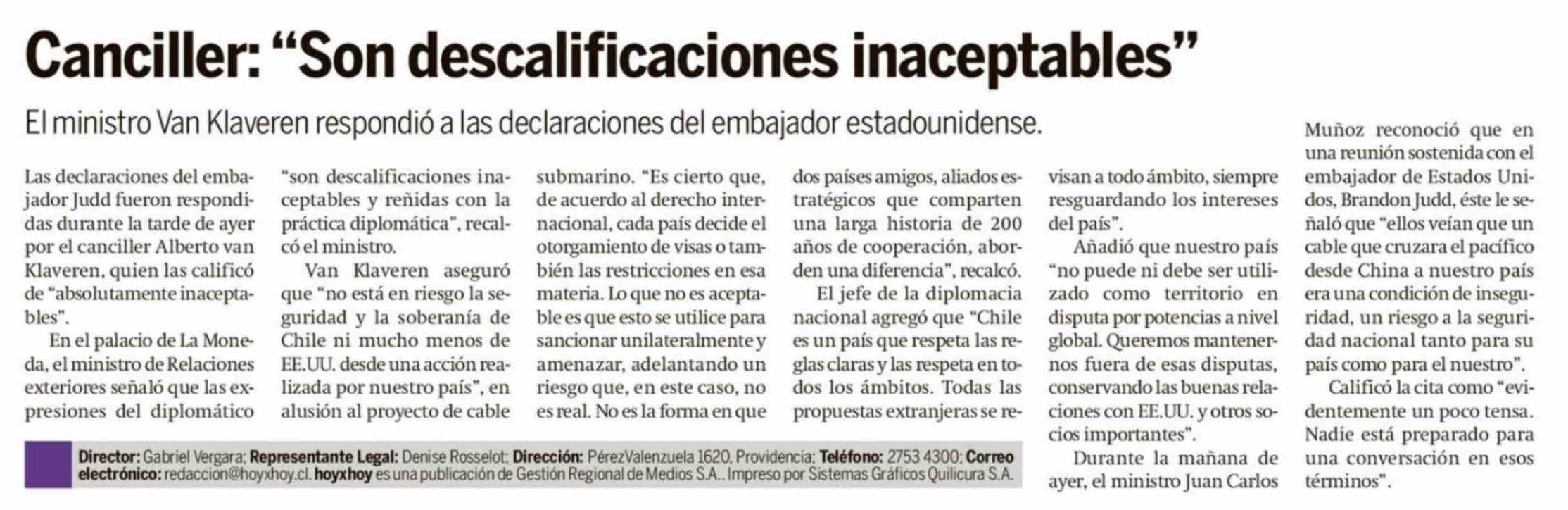 Canciller: "Son descalificaciones inaceptables"