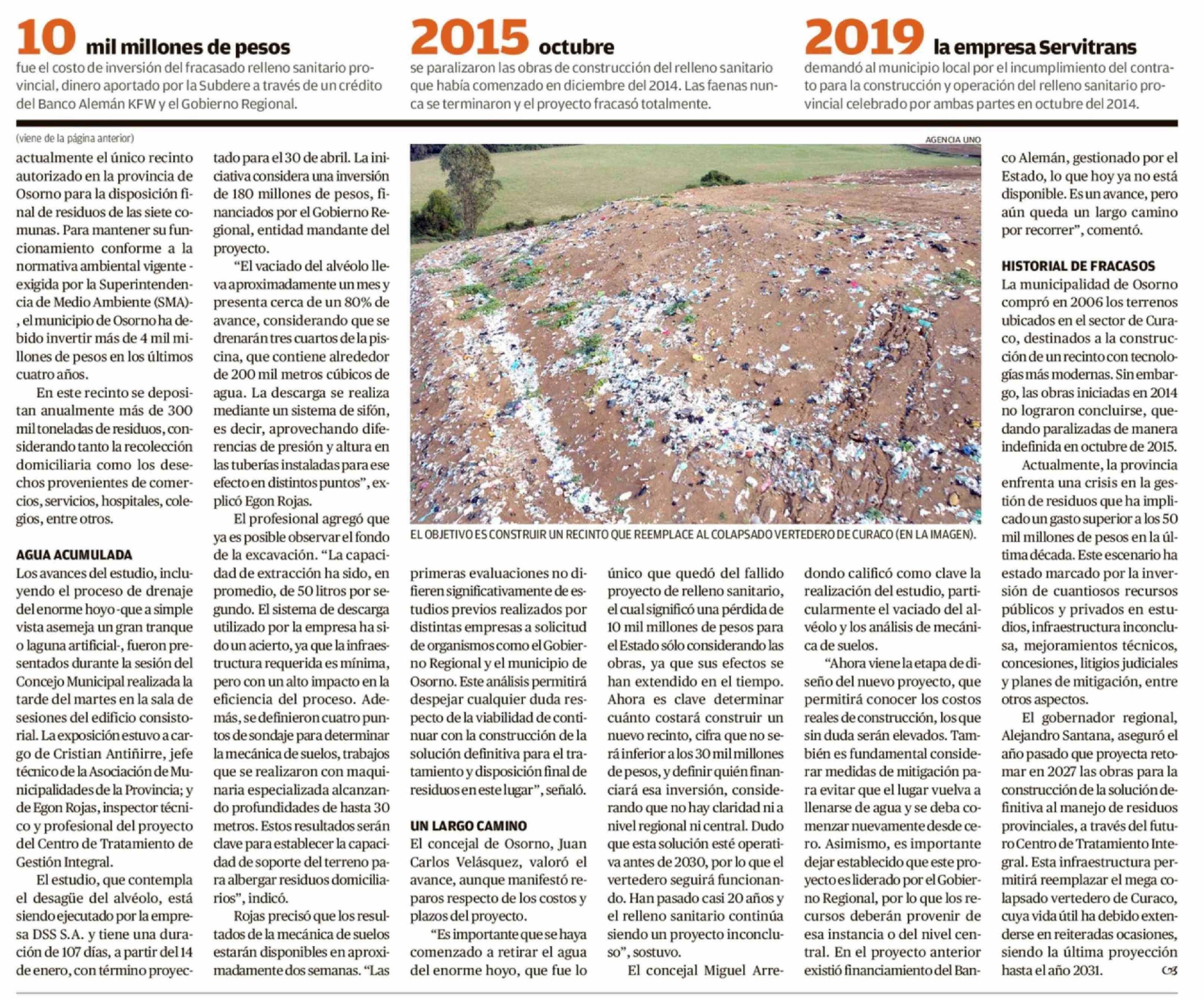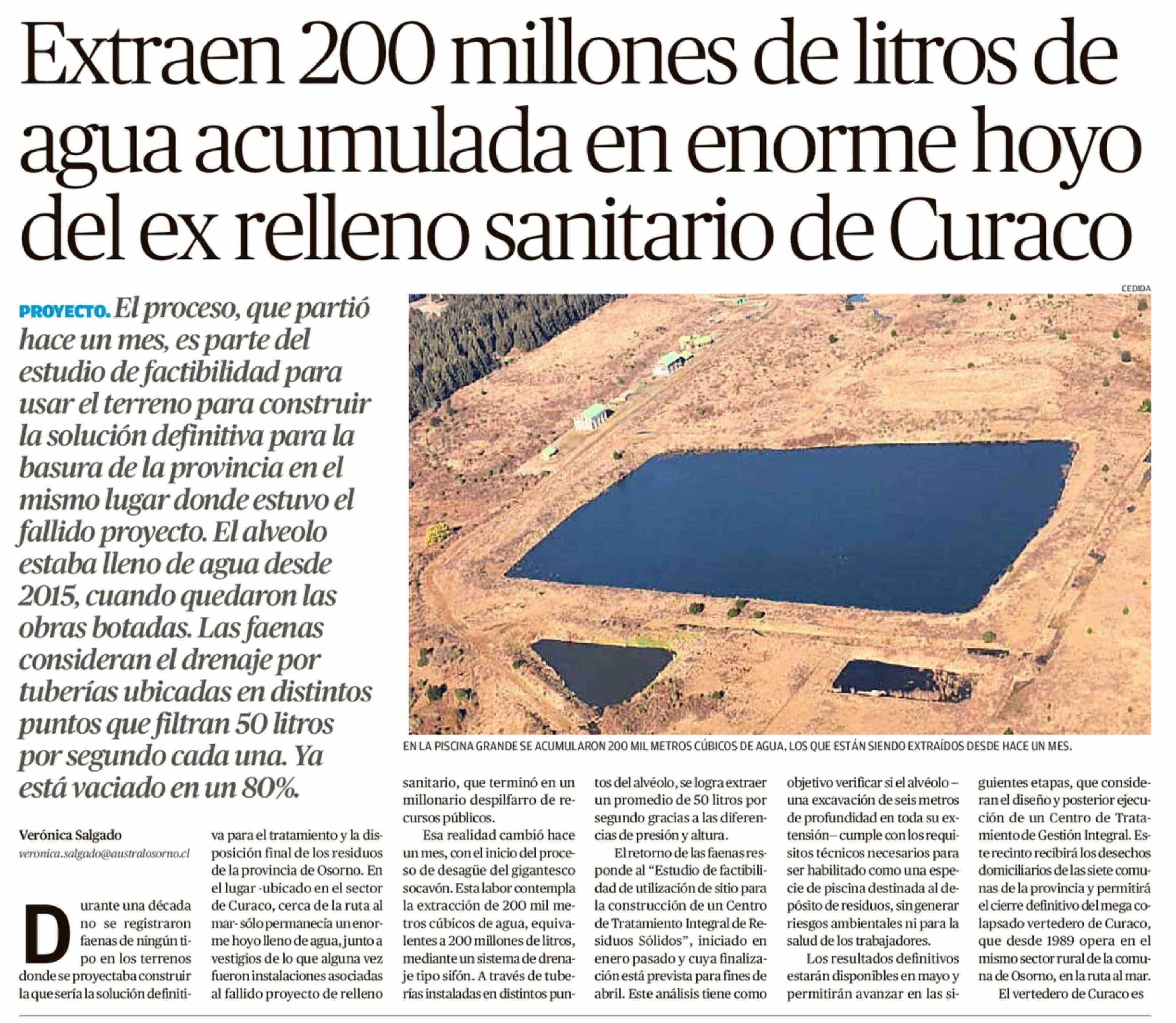 Extraen 200 millones de litros de agua acumulada en enorme hoyo del ex relleno sanitario de Curaco