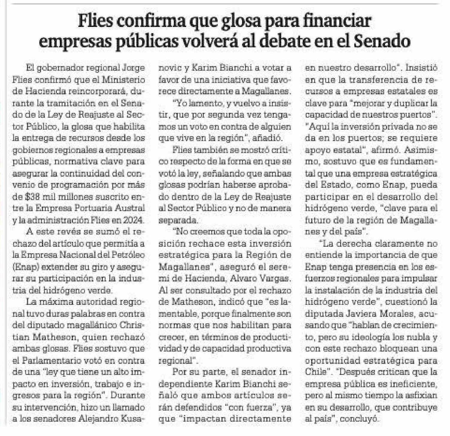 Flies confirma que glosa para financiar empresas públicas volverá al debate en el Senado