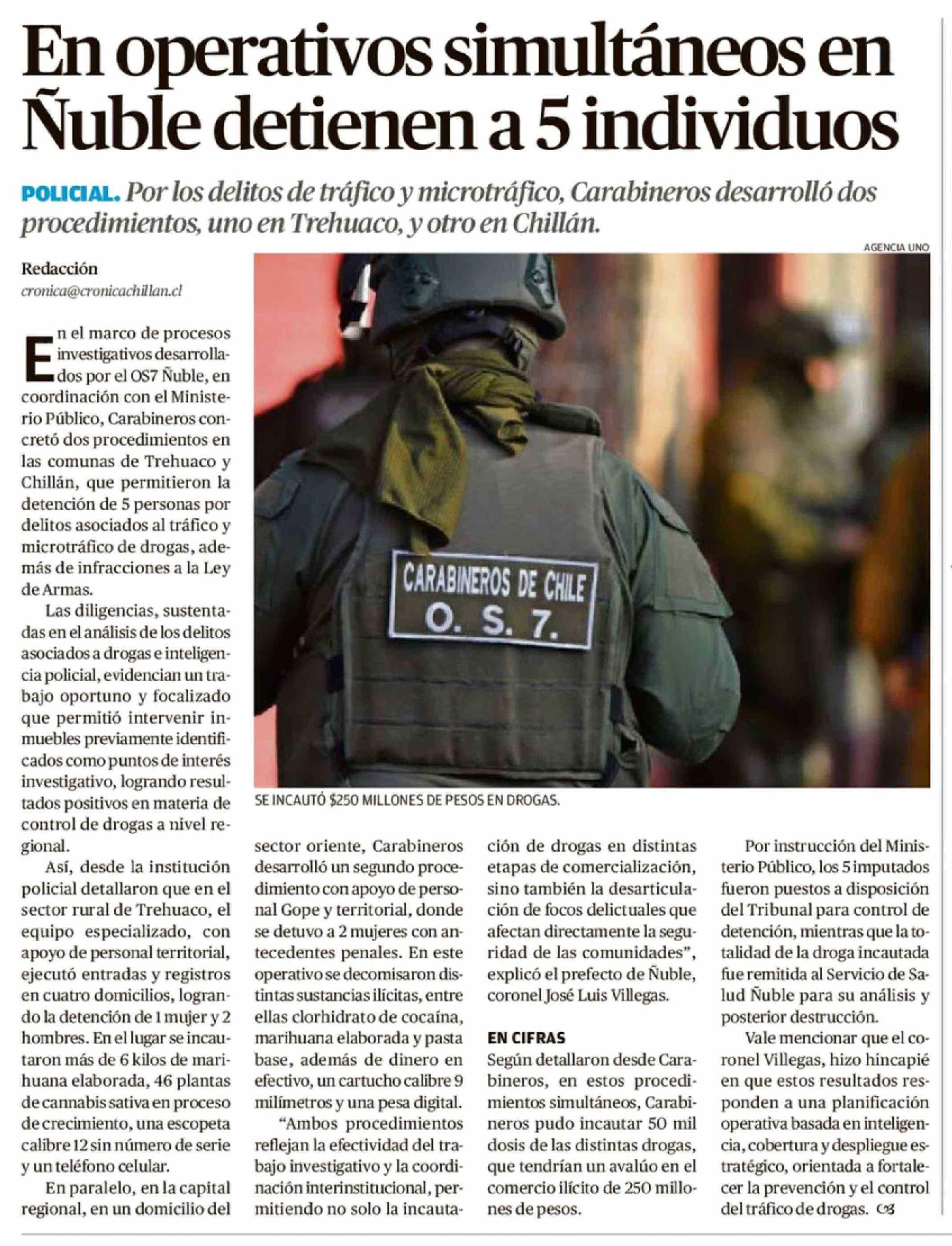 En operativos simultáneos en Nuble detienen a 5 individuos