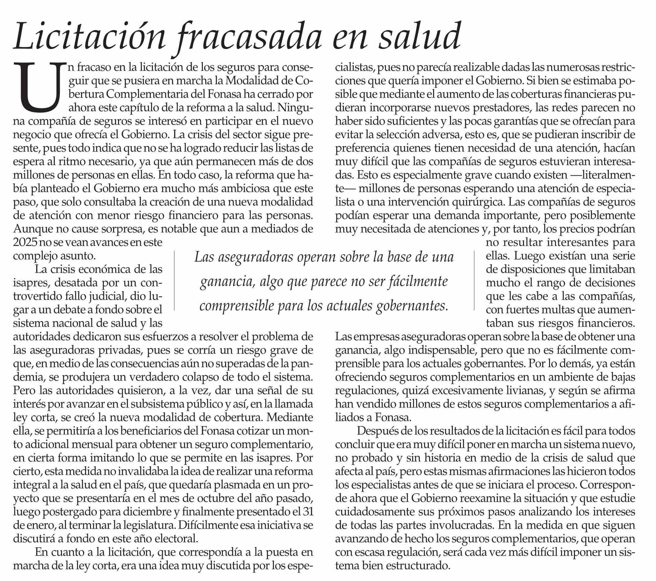 EDITORIAL: Licitación fracasada en salud