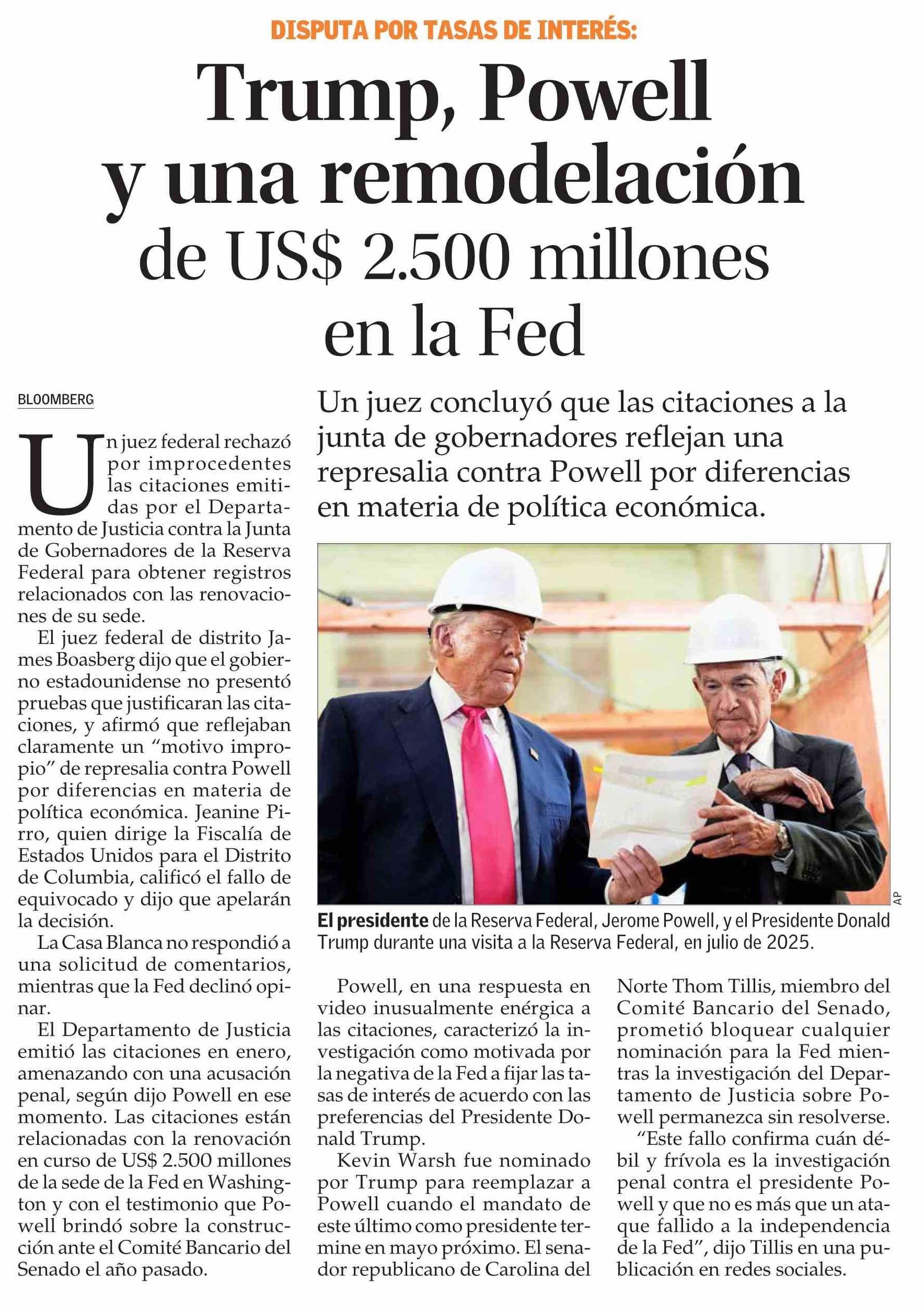 Trump, Powell y una remodelación de US$ 2.500 millones en la Fed