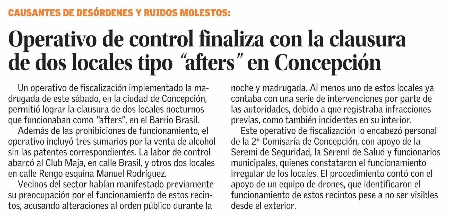 Título: Operativo de control finaliza con la clausura de dos locales tipo “afters” en Concepción