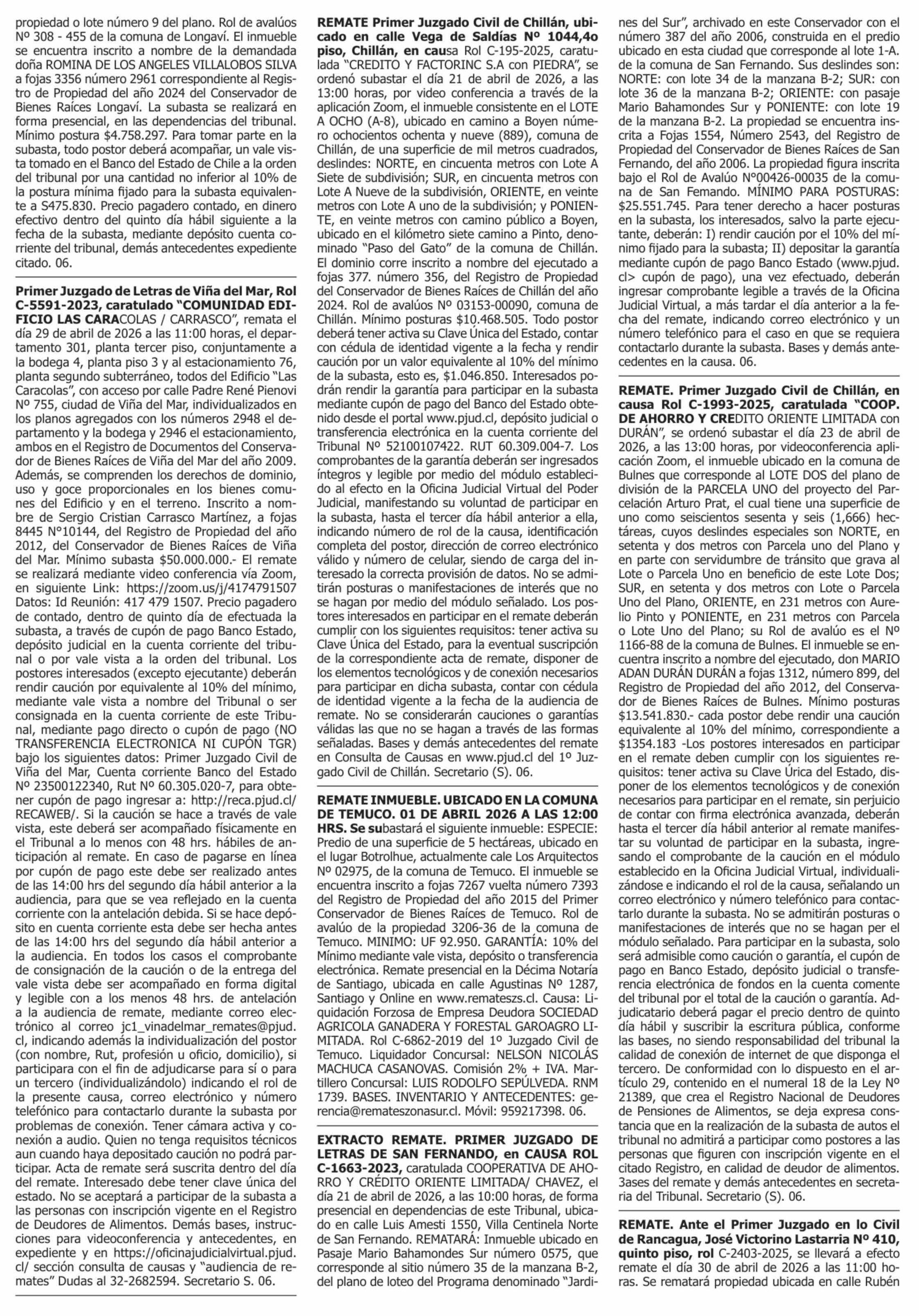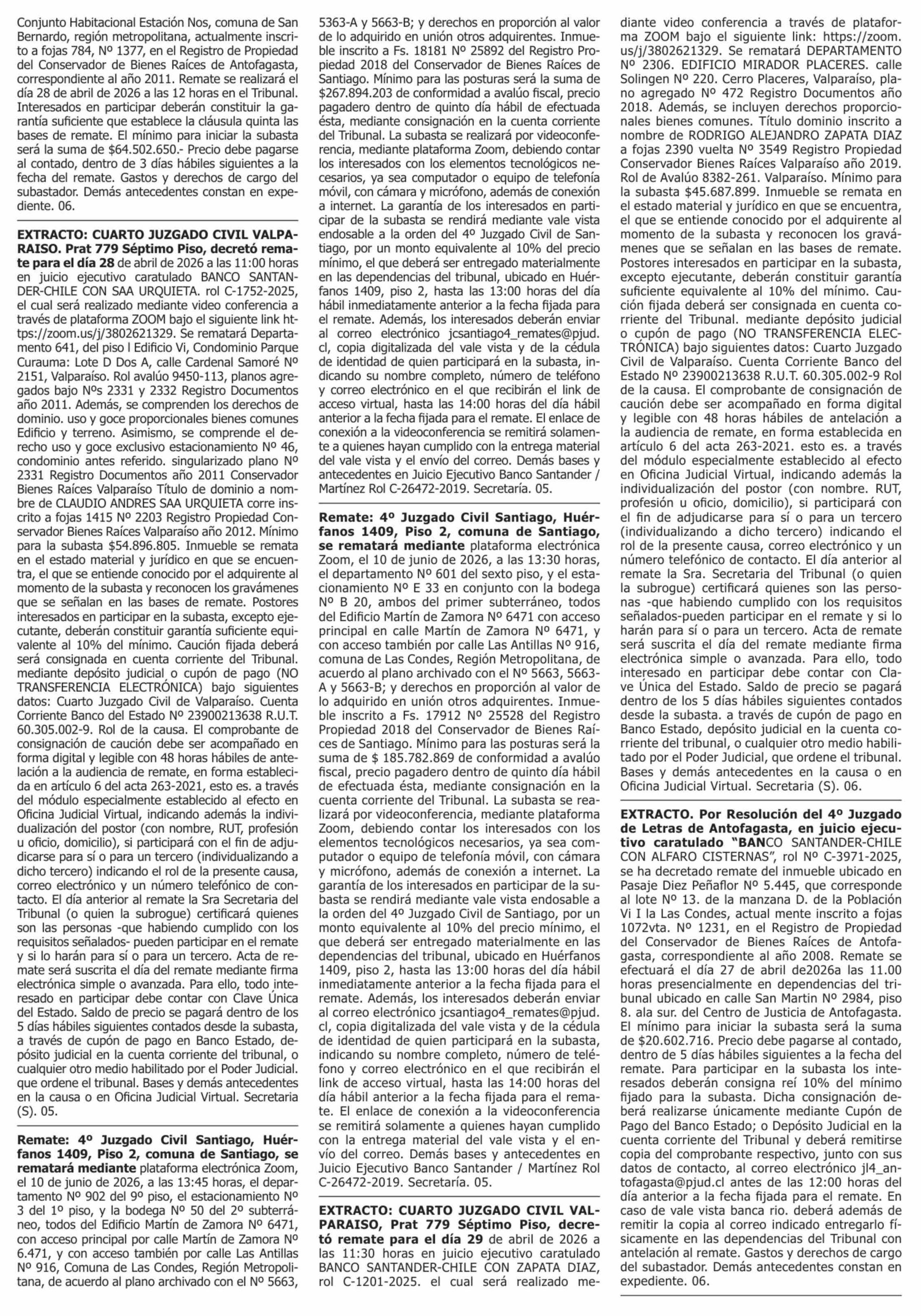 | Fecha: | 05-04-2026 | Sector: | Remates | Región: | Región Metropolitana de Santiago |