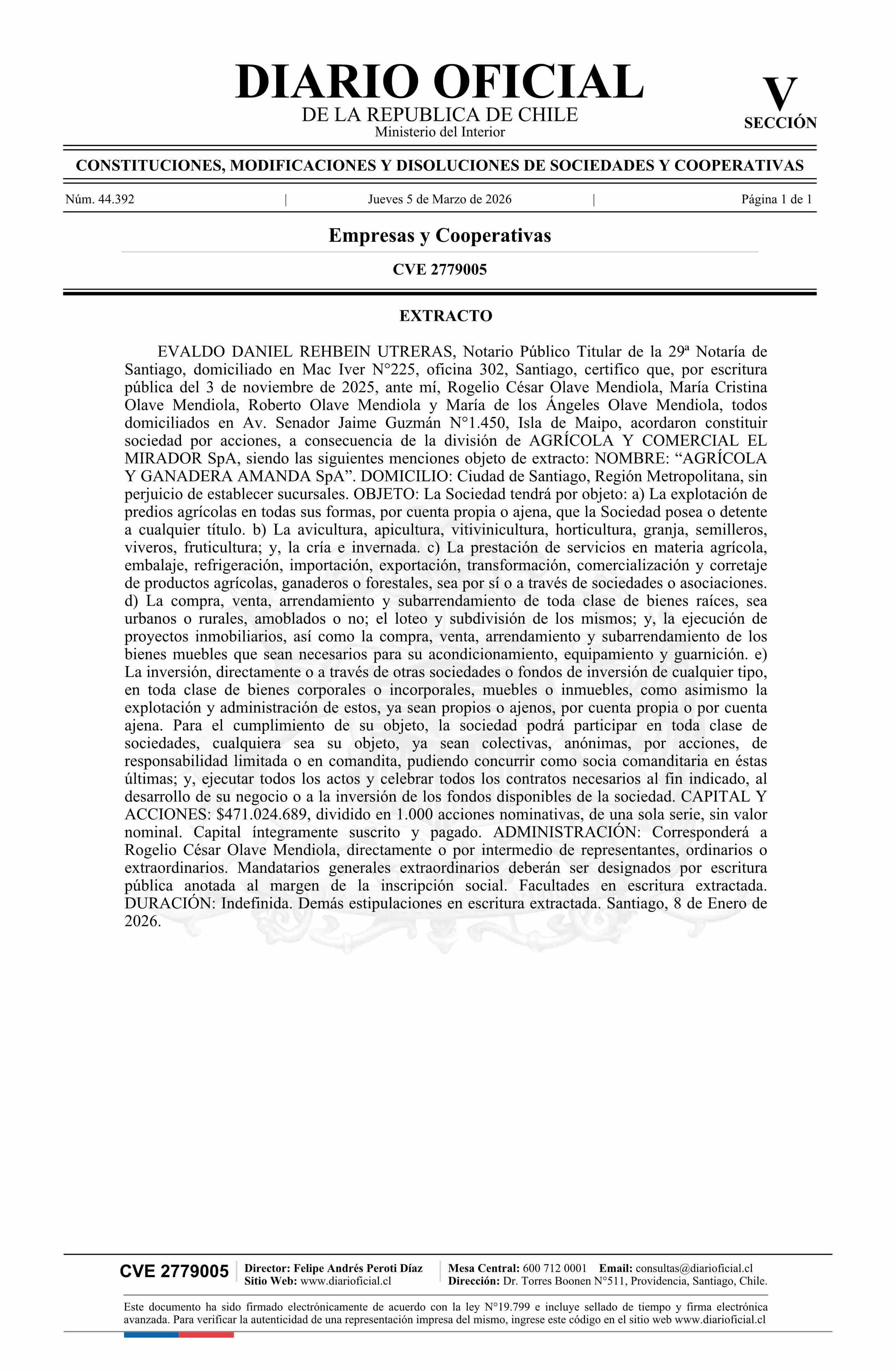Diario Oficial Edición Electrónica (Diario Oficial de Chile - 5 Empresas Y Cooper)