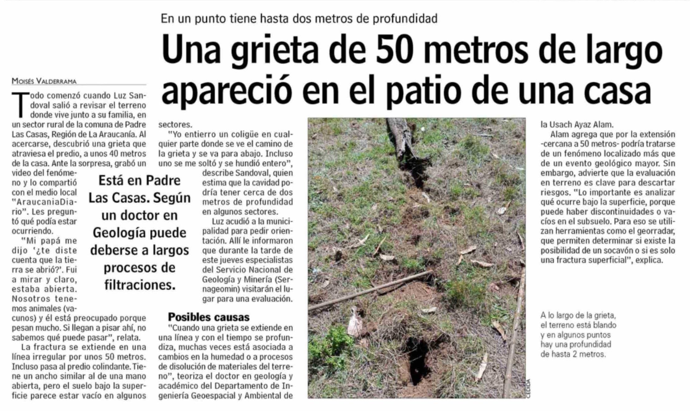 Una grieta de 50 metros de largo apareció en el patio de una casa