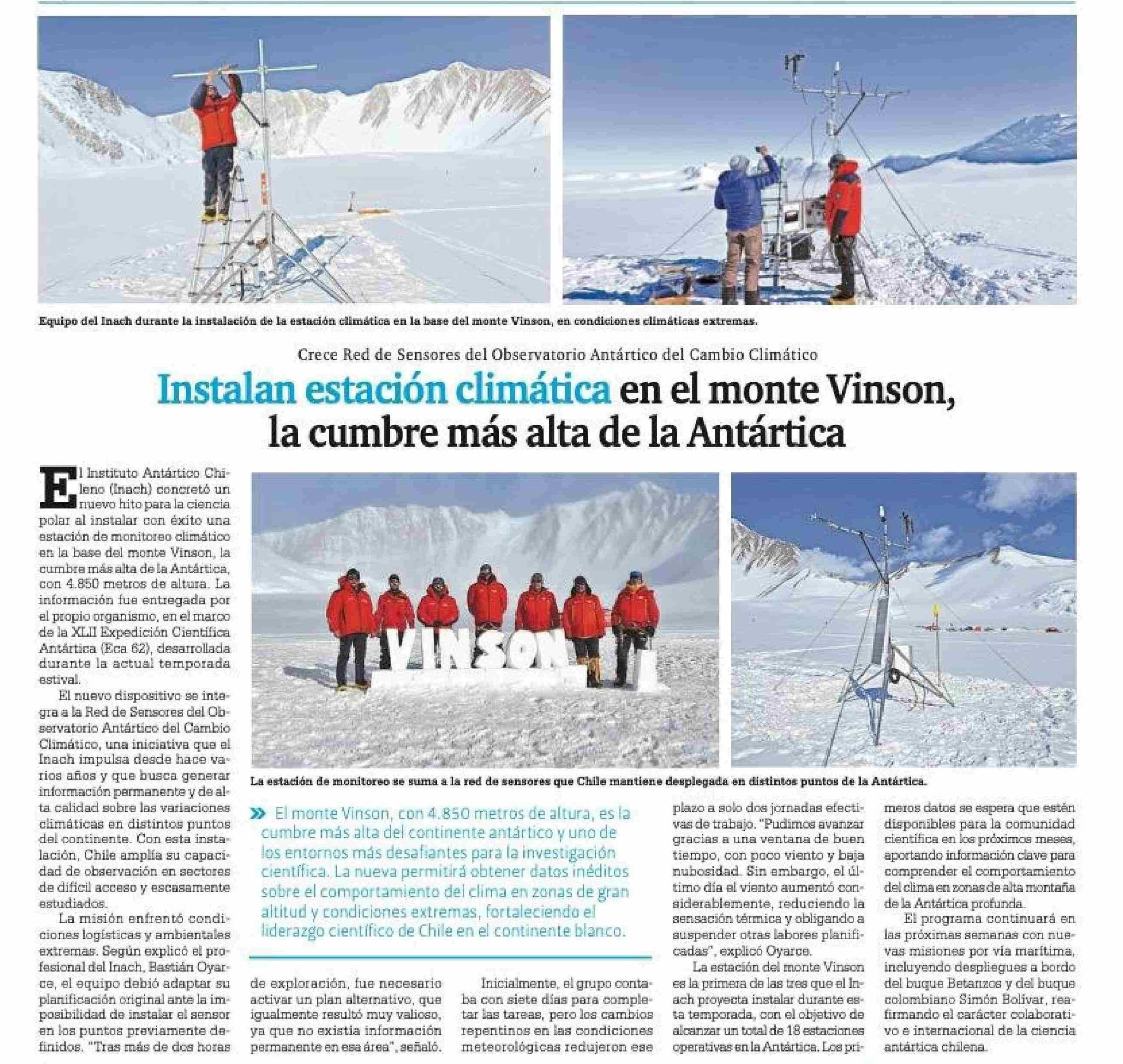Título: Instalan estación climática en el monte Vinson, la cumbre más alta de la Antártica