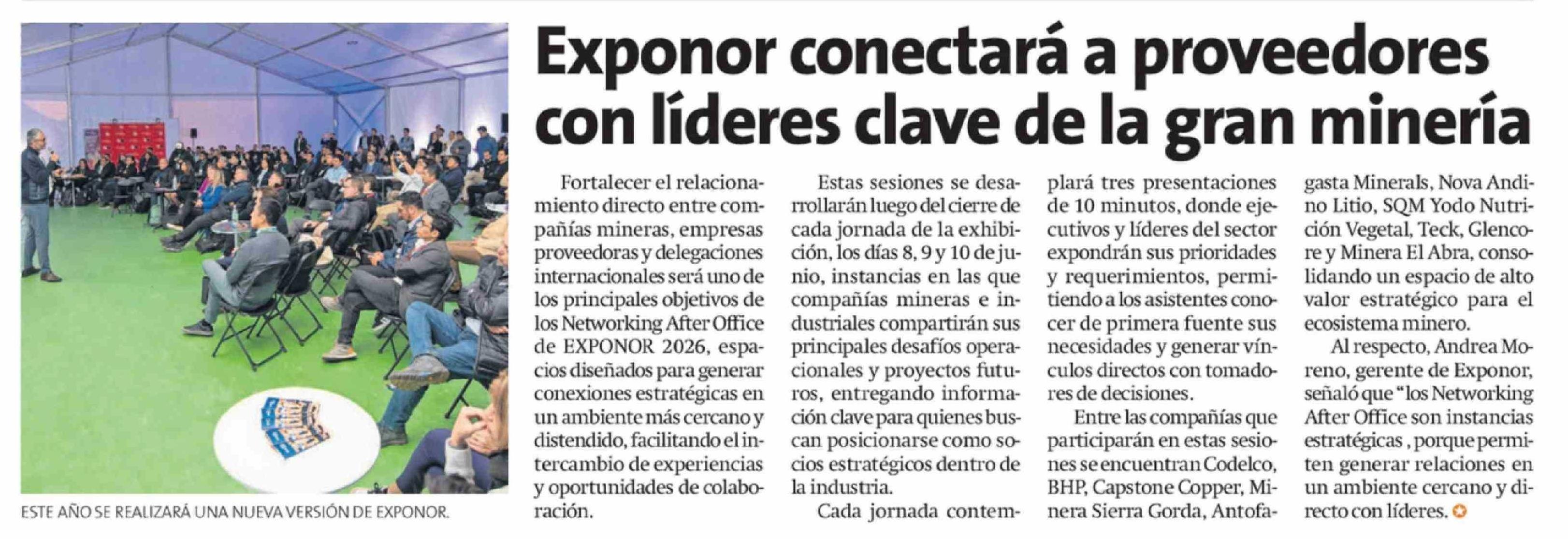 Exponor conectará a proveedores con líderes clave de la gran minería