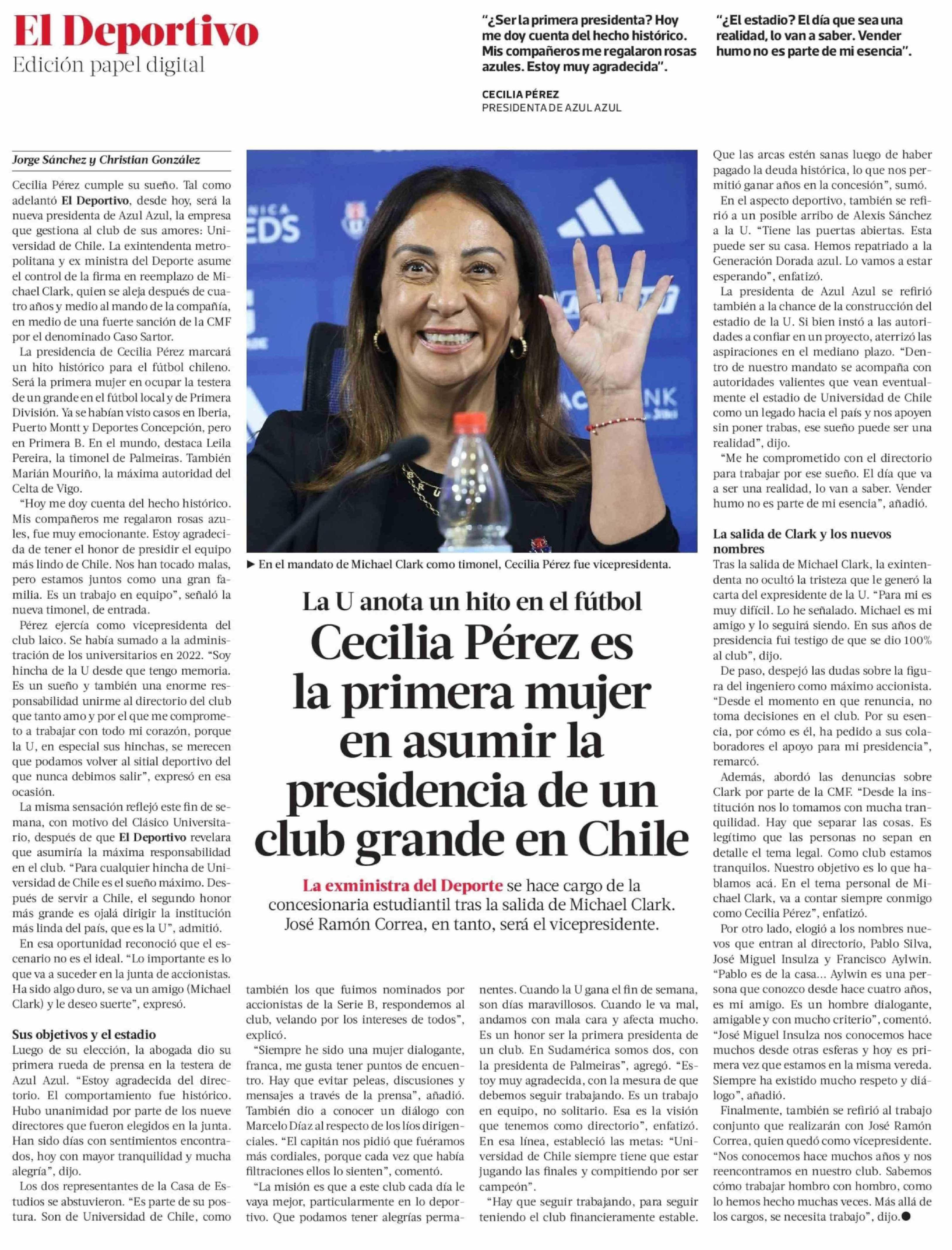 Cecilia Pérez es la primera mujer en asumir la presidencia de un club grande en Chile