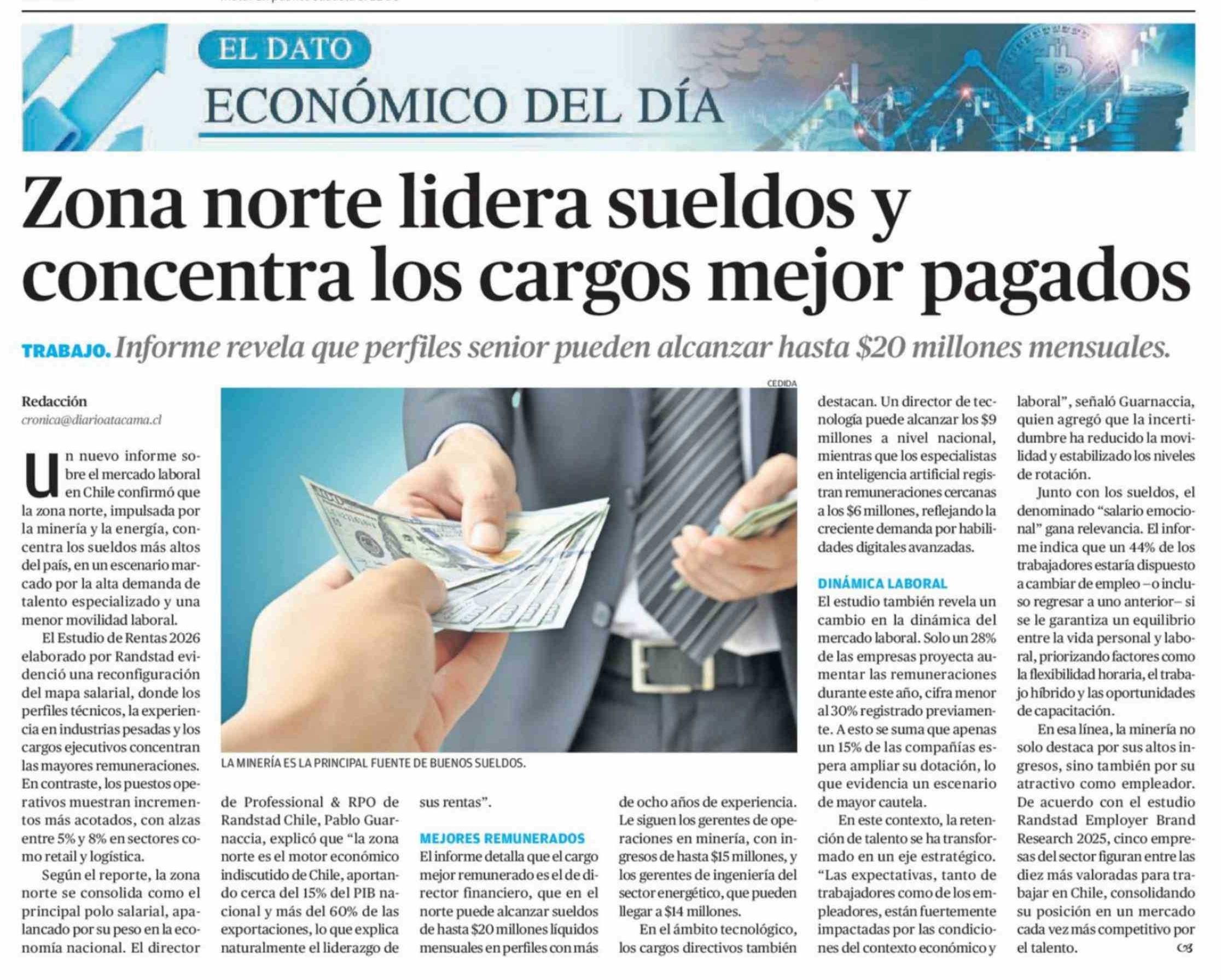Zona norte lidera sueldos y concentra los cargos mejor pagados
