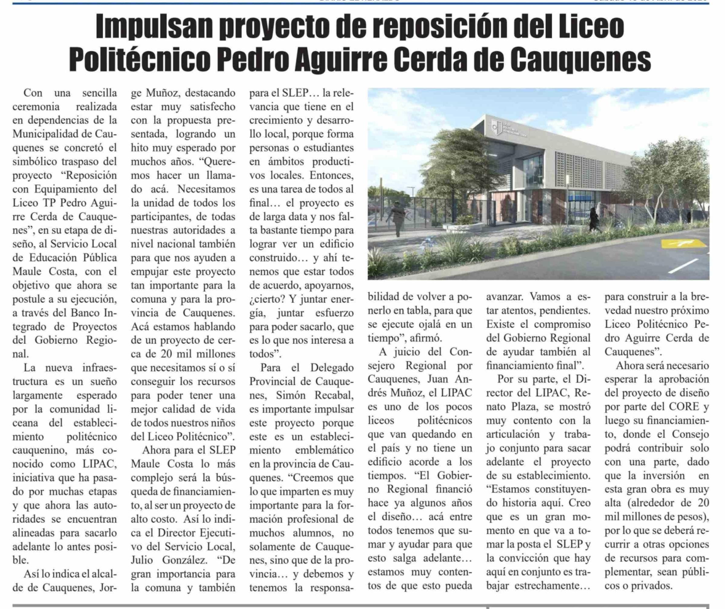 Impulsan proyecto de reposición del Liceo Politécnico Pedro Aguirre Cerda de Cauquenes