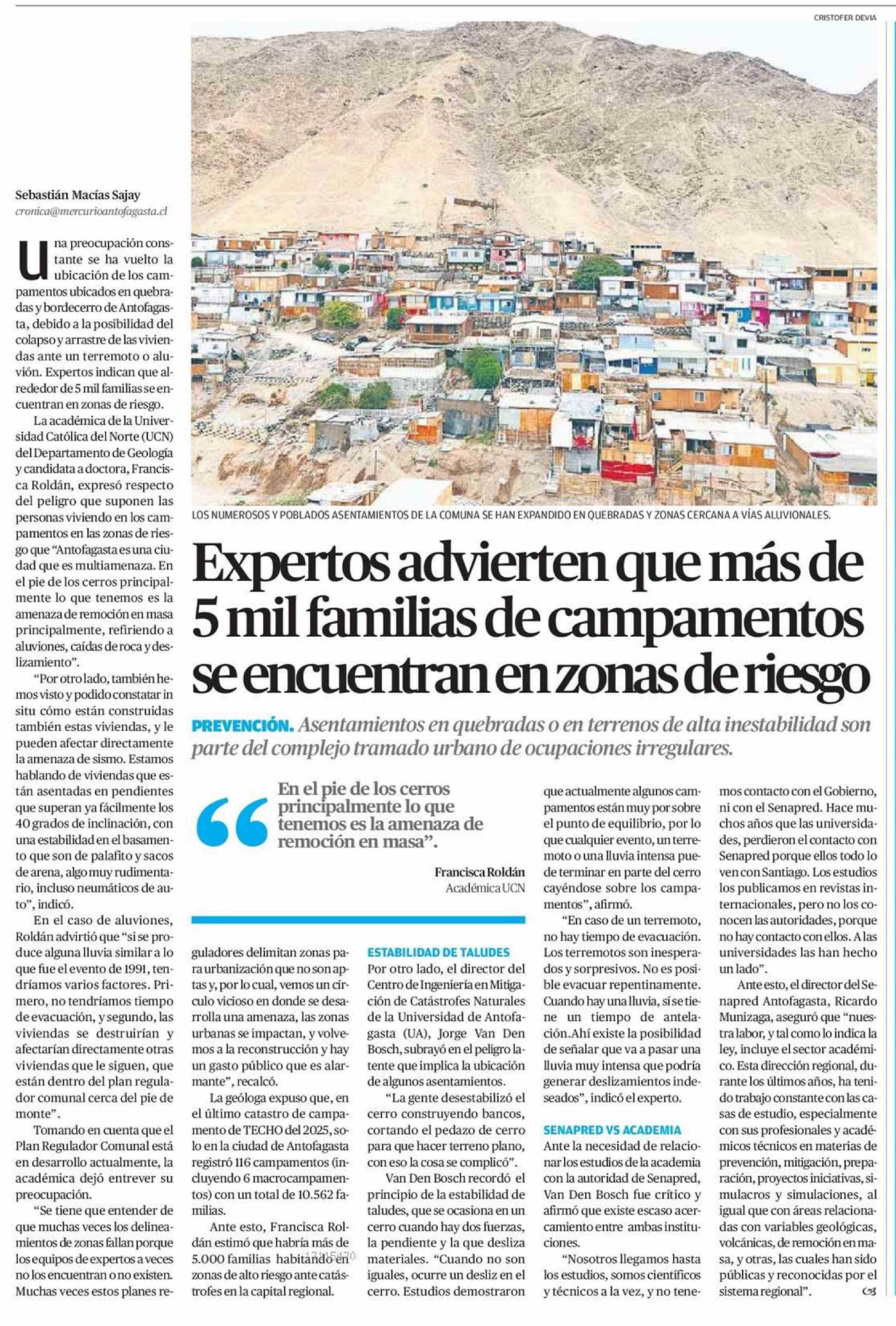 Título: Expertos advierten que más de 5 mil familias de campamentos se encuentran en zonas de riesgo