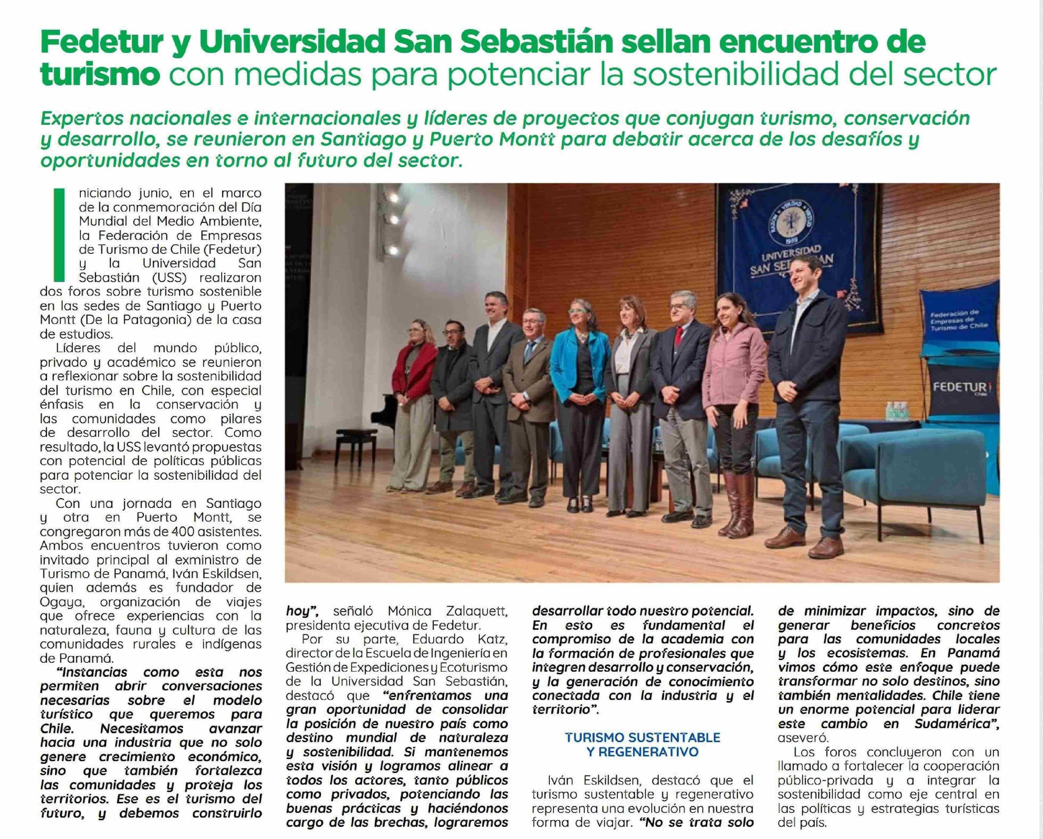 Fedetur Universidad San Sebastián sellan encuentro de turismo con medidas para potenciar la sostenibilidad del sector