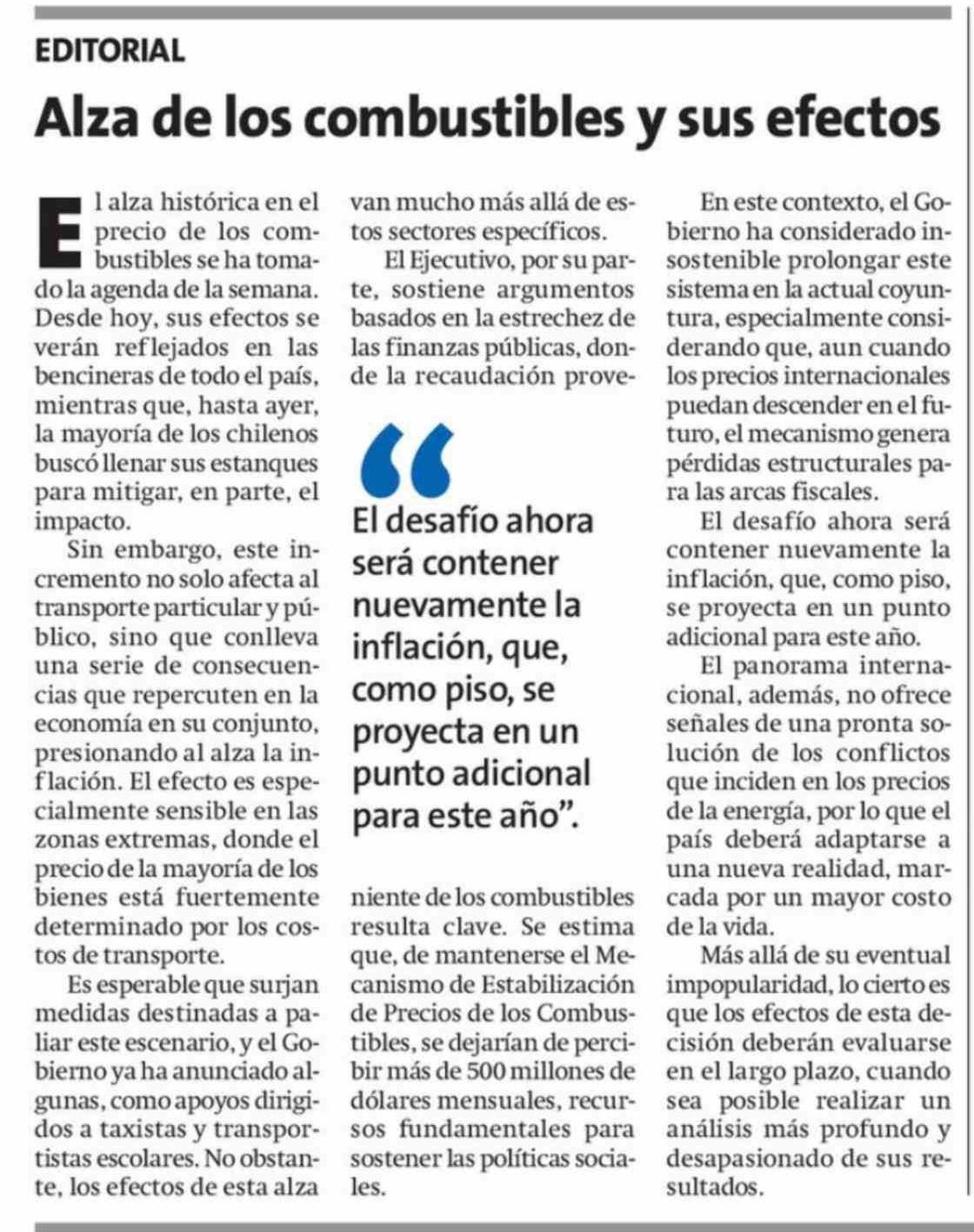 Editorial: Alza de los combustibles y sus efectos