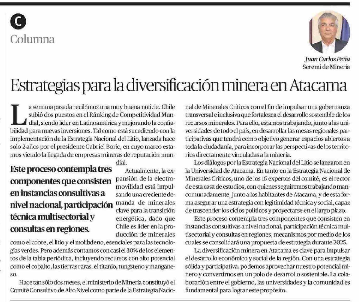 Columnas de Opinión: Estrategias para la diversificación minera en Atacama