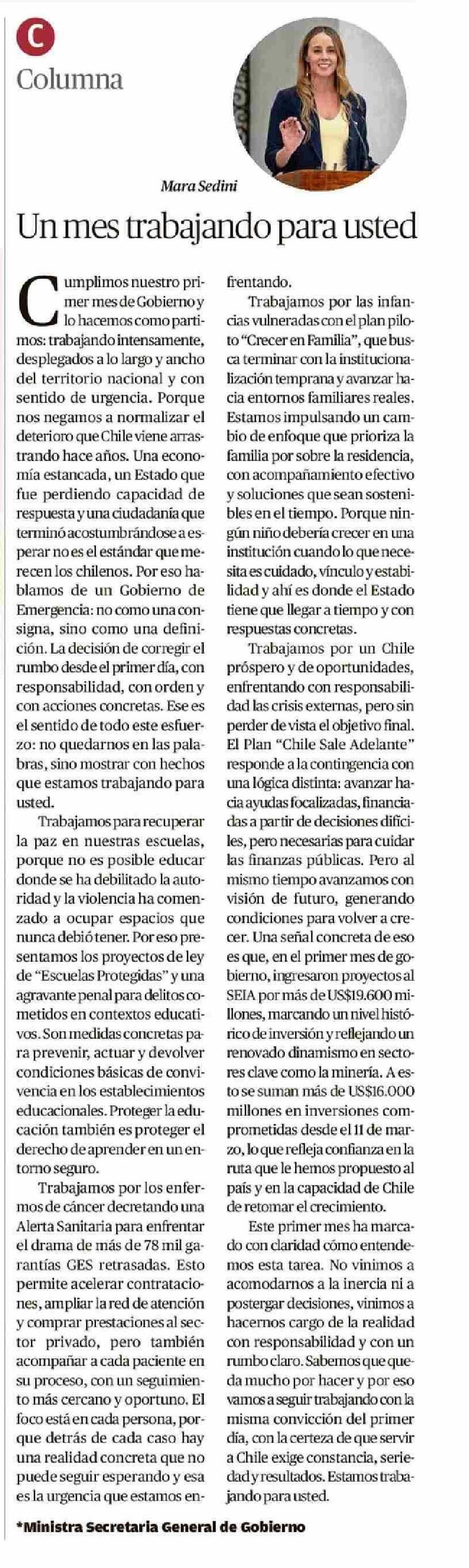 COLUMNAS DE OPINIÓN: Un mes trabajando para usted