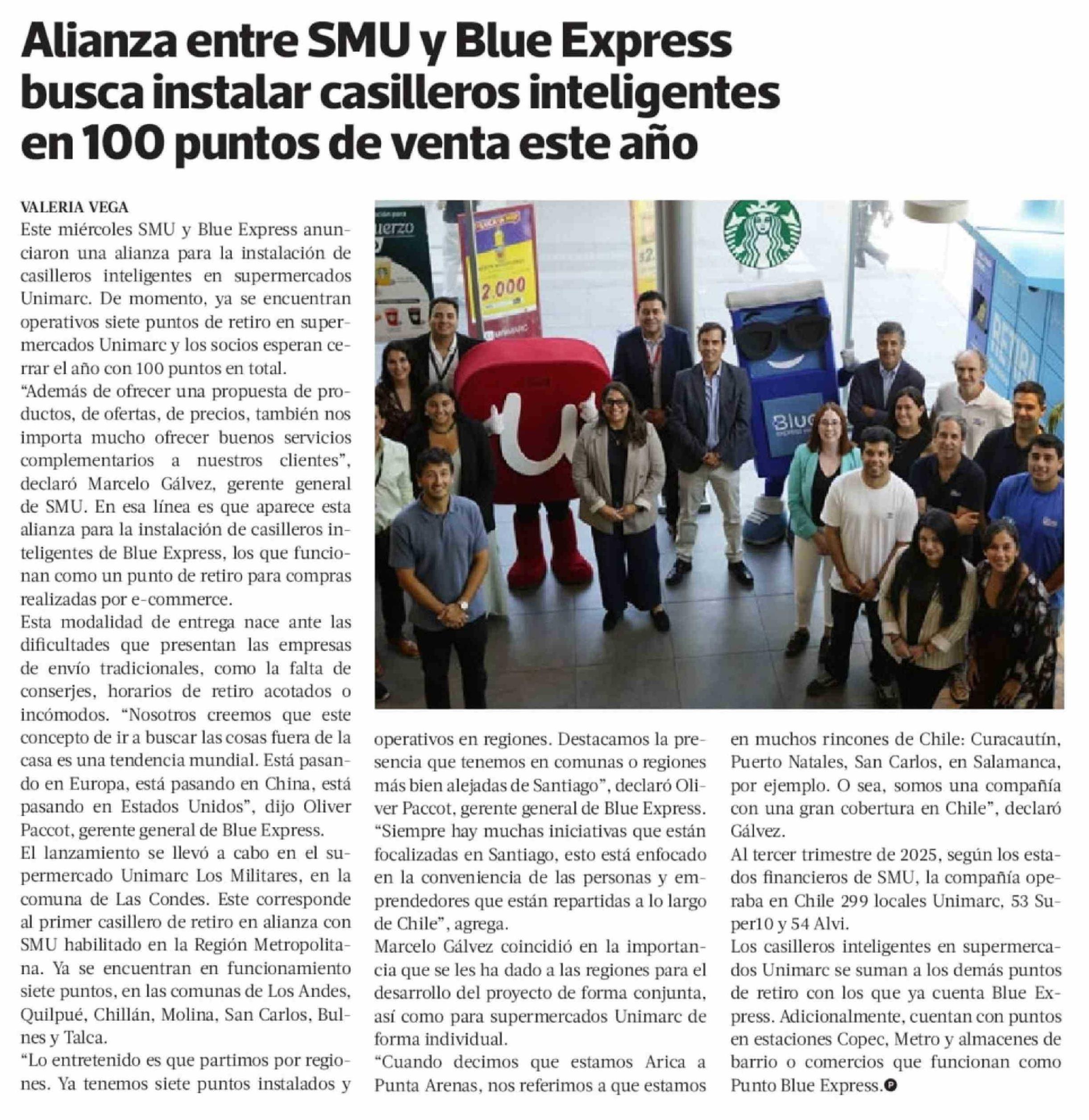 Alianza entre SMU y Blue Express busca instalar casilleros inteligentes en 100 puntos de venta este año