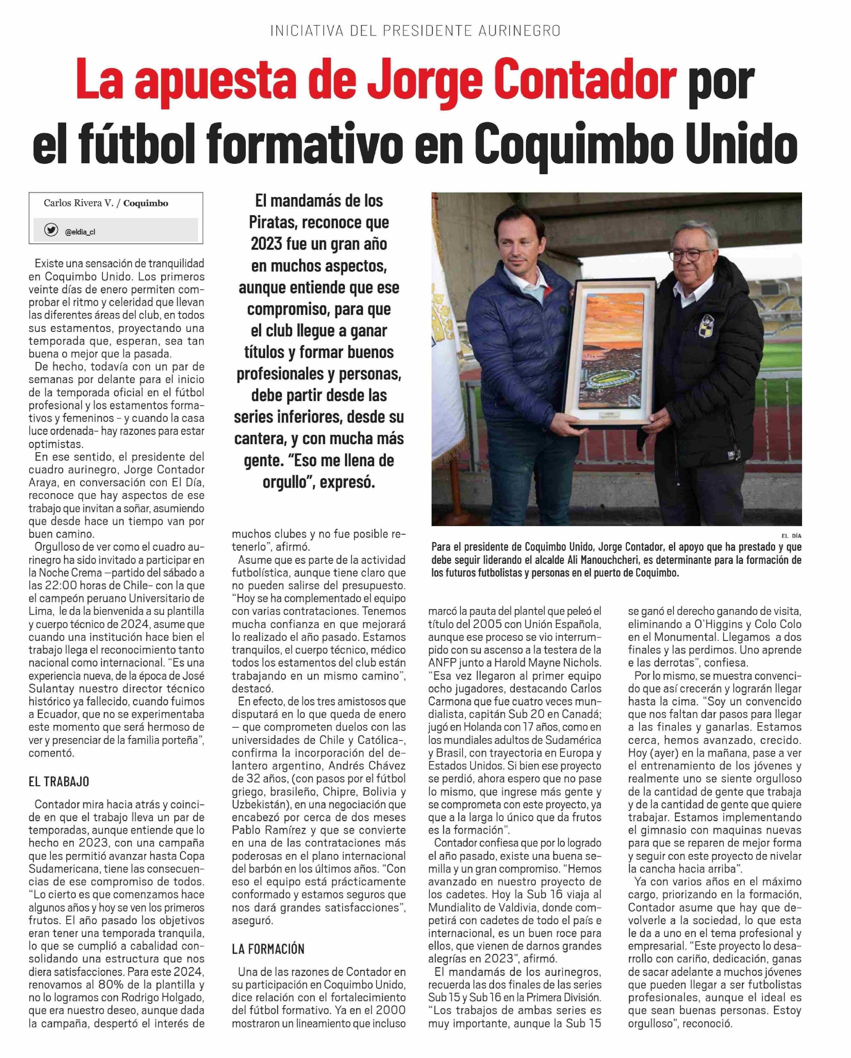 La apuesta de Jorge Contador por el fútbol formativo en Coquimbo Unido