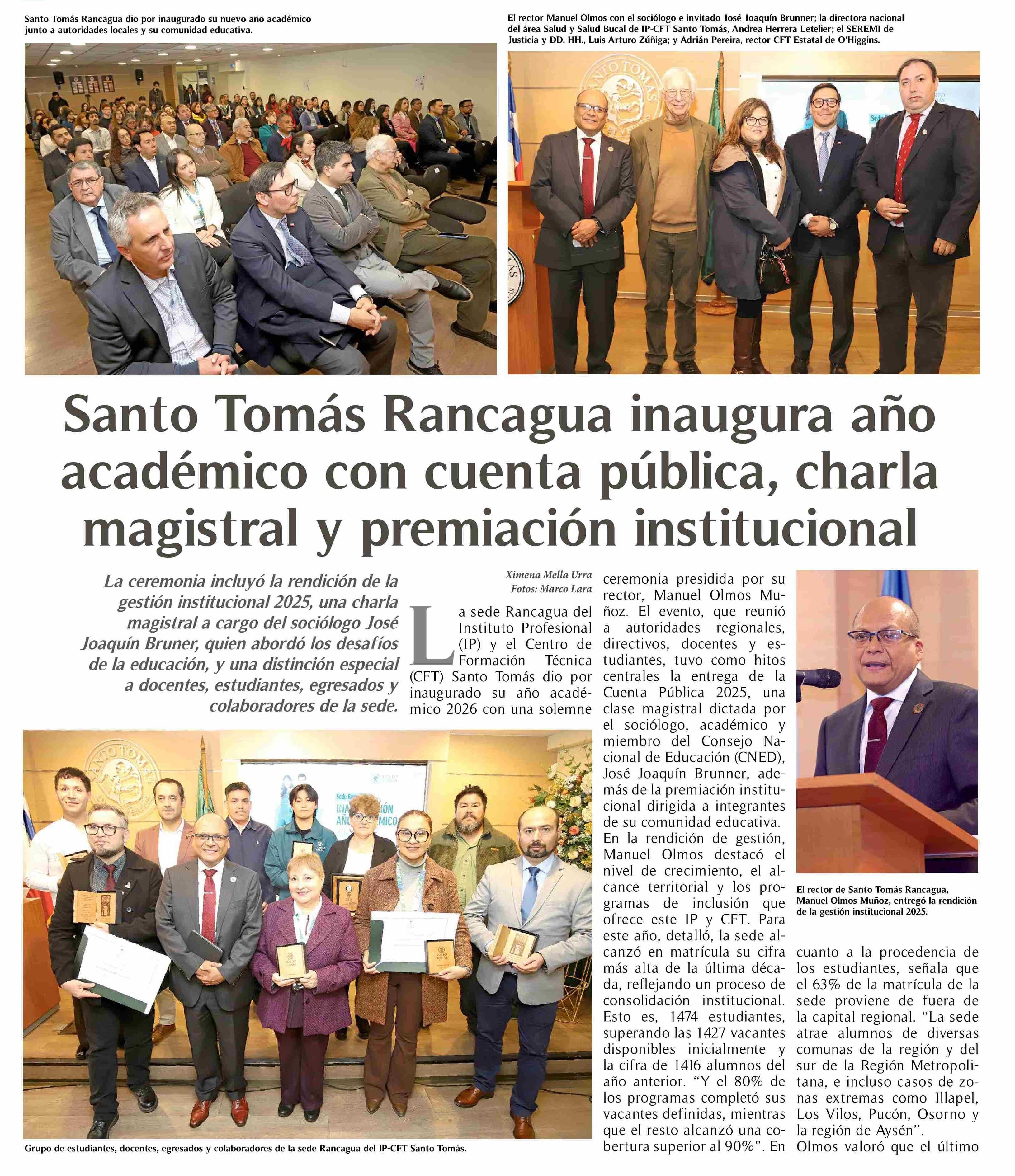 Santo Tomás Rancagua inaugura año académico con cuenta pública, charla masistral v premiación institucional