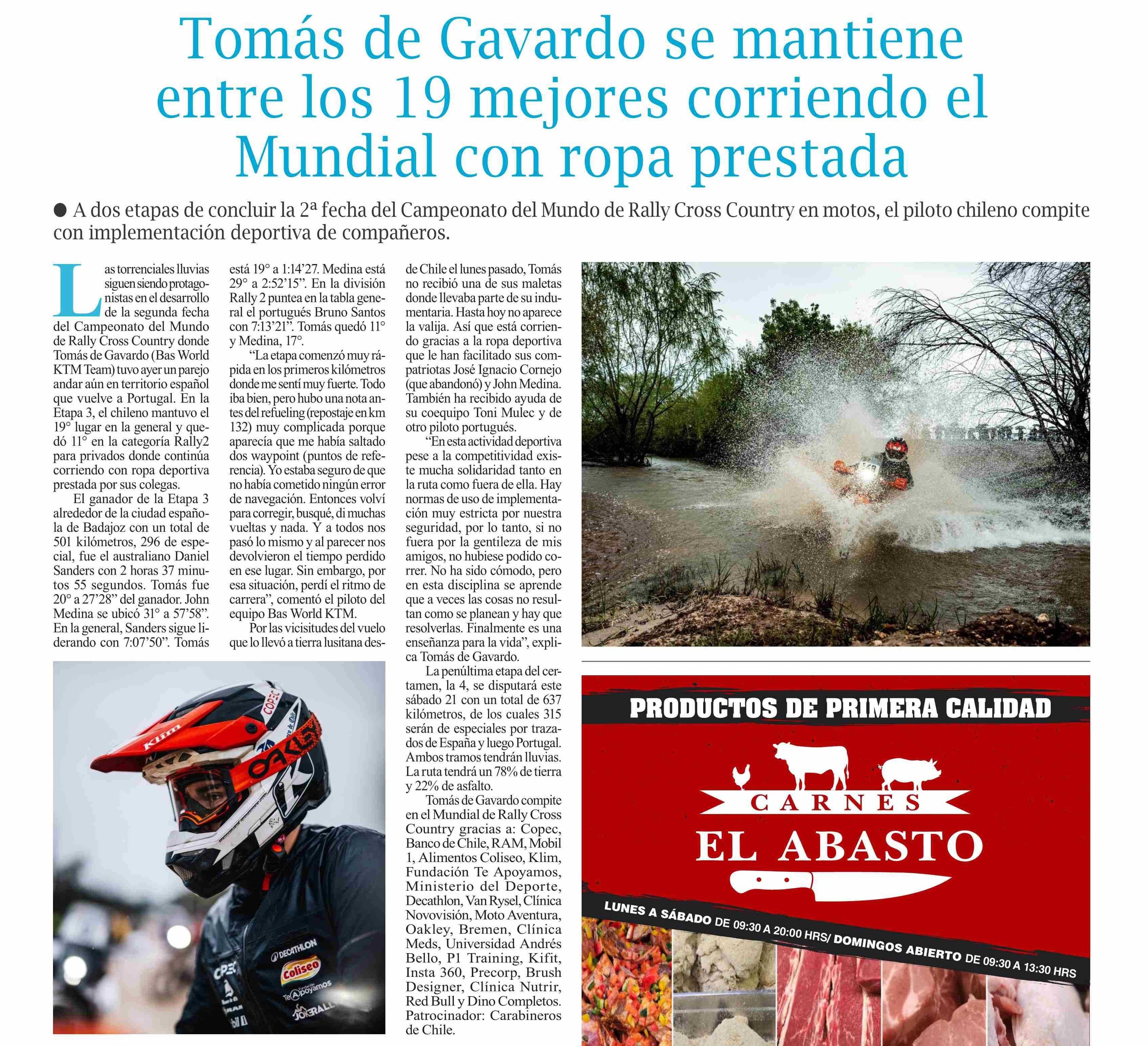 Tomás de Gavardo se mantiene entre los 19 mejores corriendo el Mundial con ropa prestada