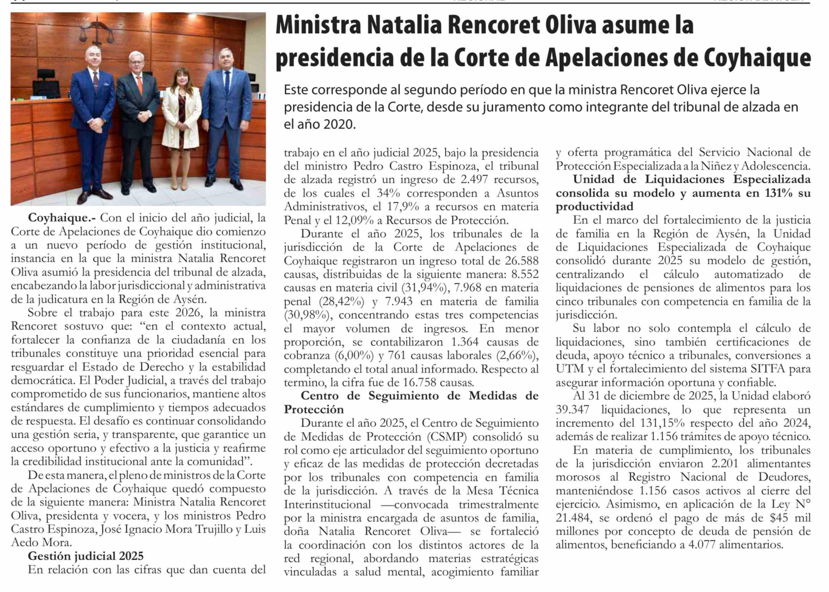 Título: Ministra Natalia Rencoret Oliva asume la presidencia de la Corte de Apelaciones de Coyhaique
