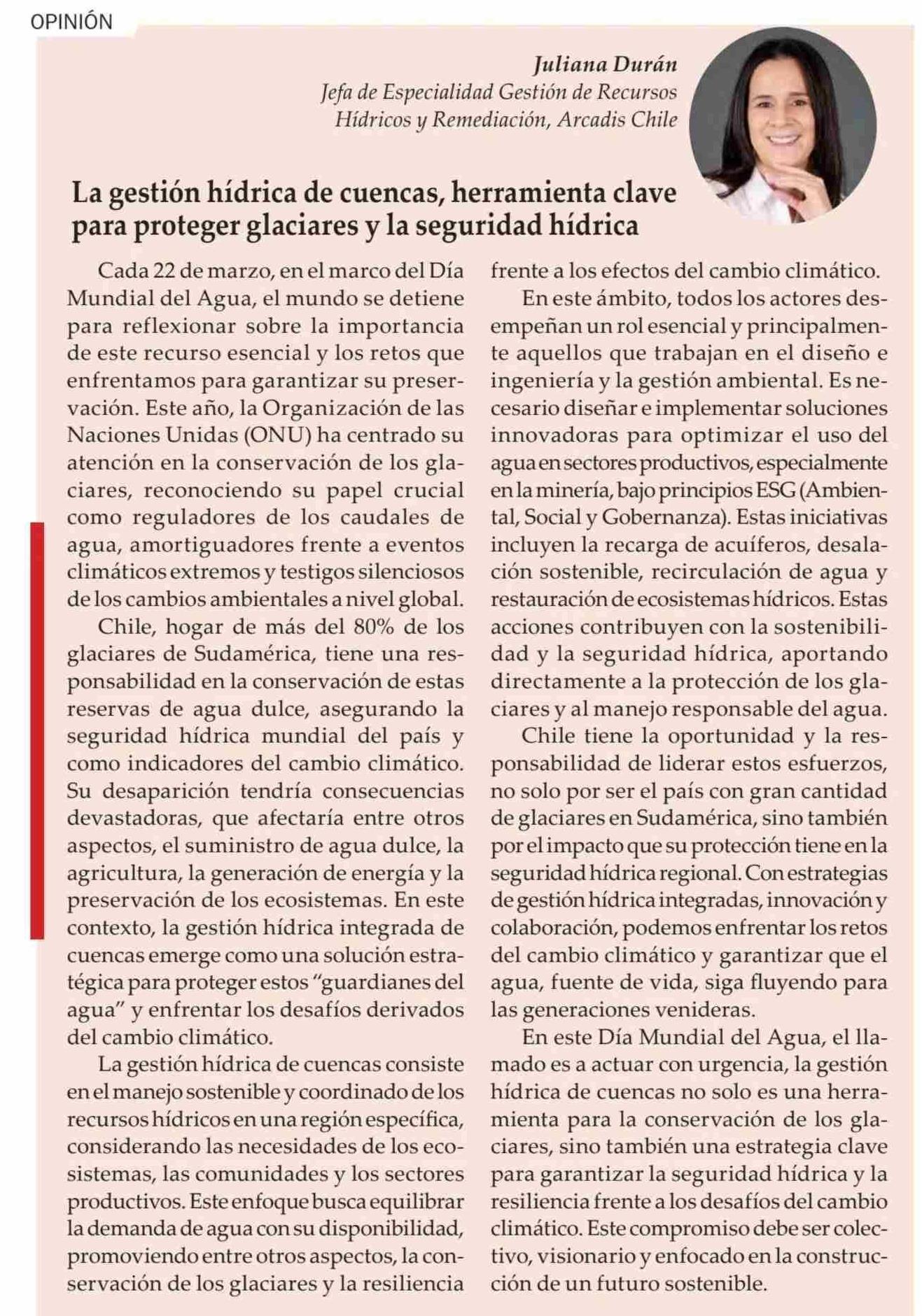 COLUMNAS DE OPINIÓN: La gestión hídrica de cuencas, herramienta clave para proteger glaciares y la seguridad hídrica