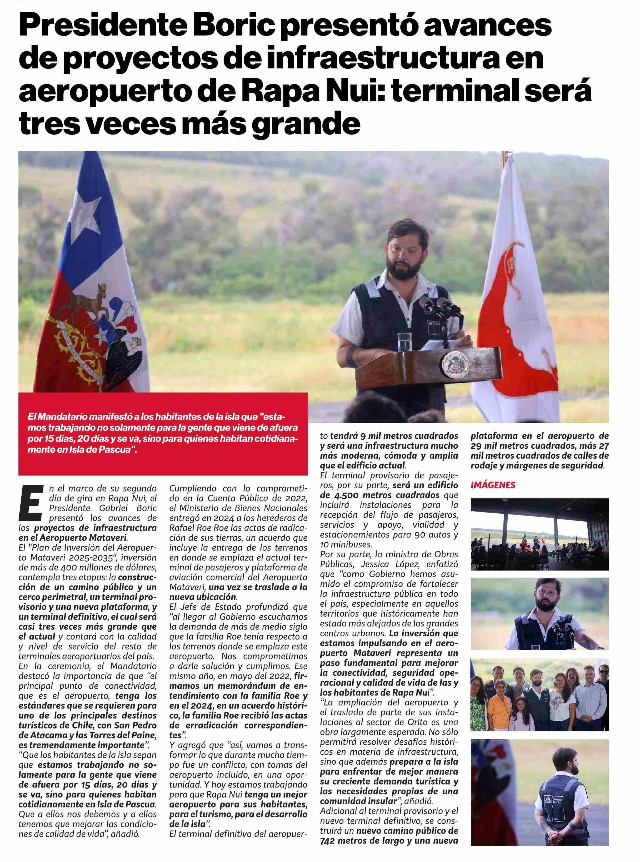 Presidente Boric presentó avances de proyectos de infraestructura en aeropuerto de Rapa Nui: terminal será tres veces más grande