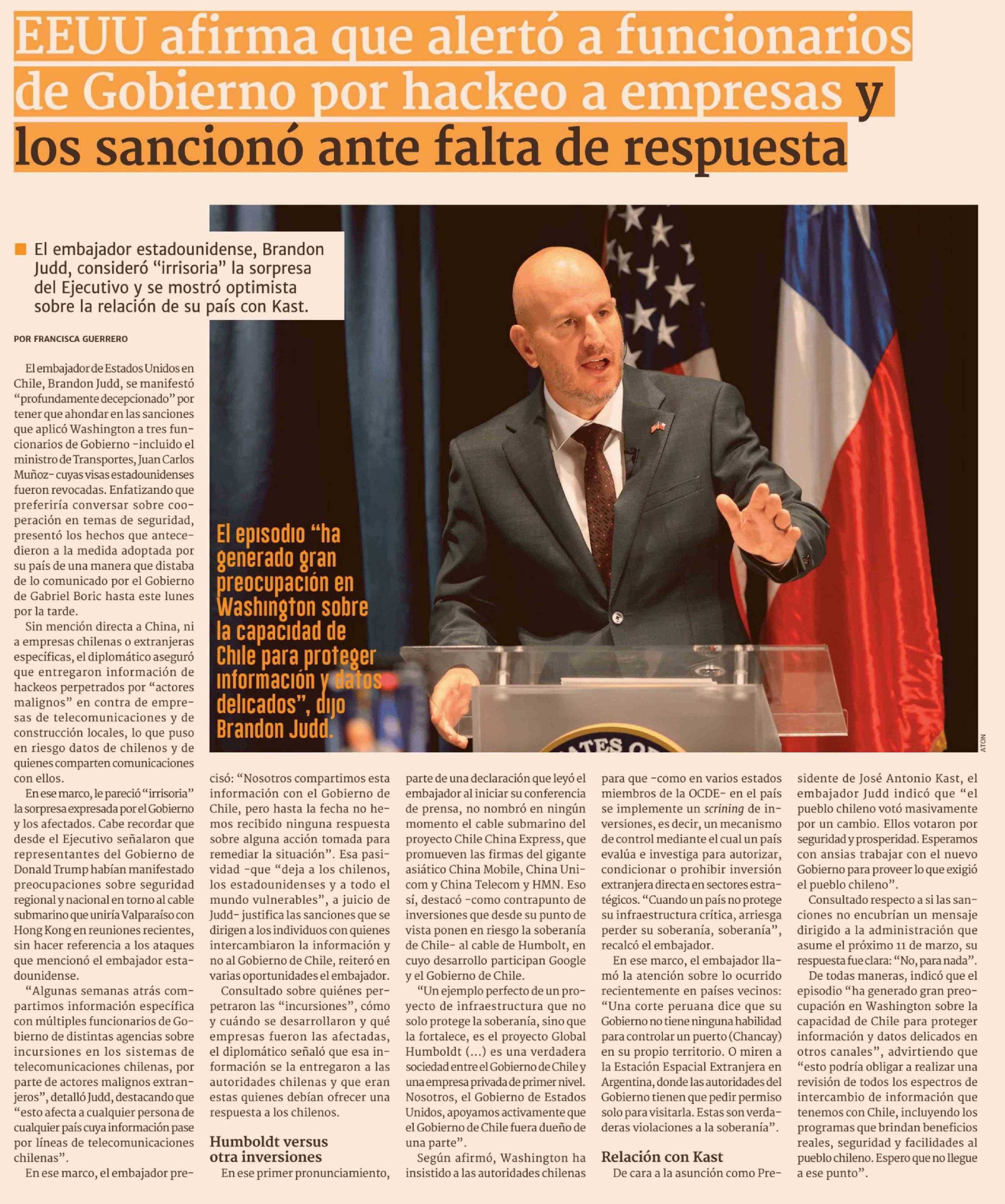 EEUU afirma que alertó a funcionarios de Gobierno por hackeo a empresas y los sancionó ante falta de respuesta