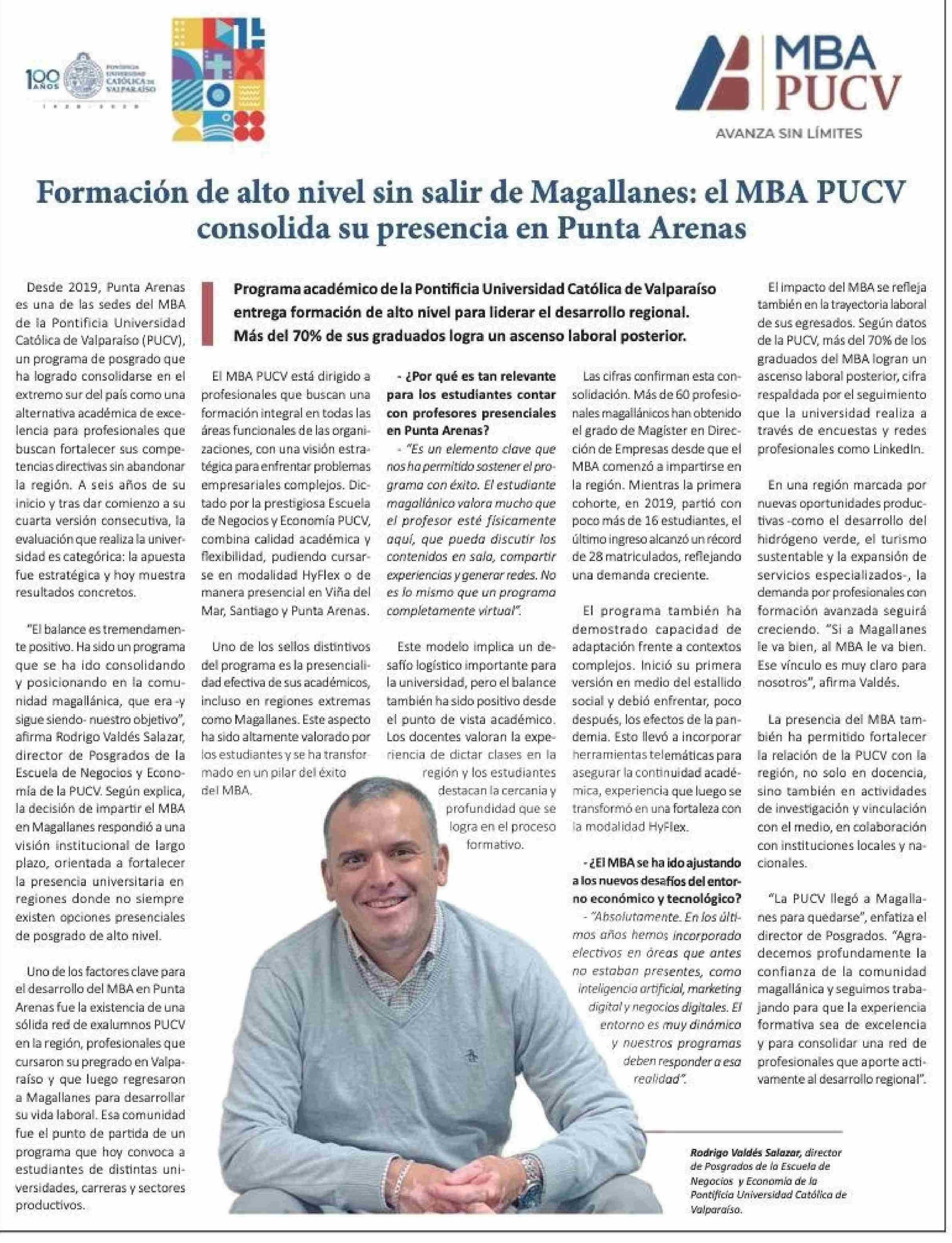 Formación de alto nivel sin salir de Magallanes: el MBA PUCV consolida su presencia en Punta Arenas