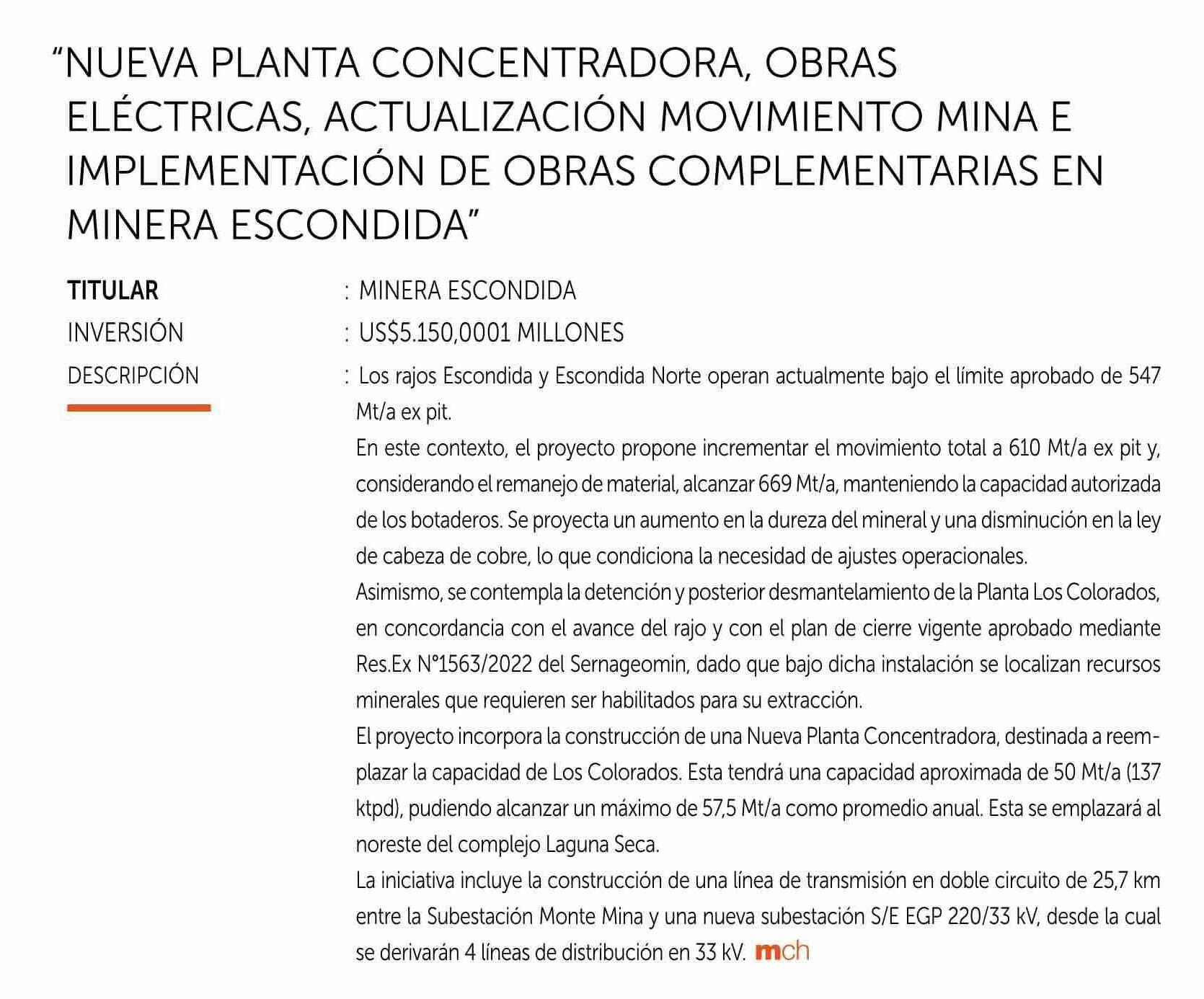 | Título: | “NUEVA PLANTA CONCENTRADORA, OBRAS ELÉCTRICAS, ACTUALIZACIÓN MOVIMIENTO MINA E IMPLEMENTACIÓN DE OBRAS COMPLEMENTARIAS EN MINERA ESCONDIDA” |