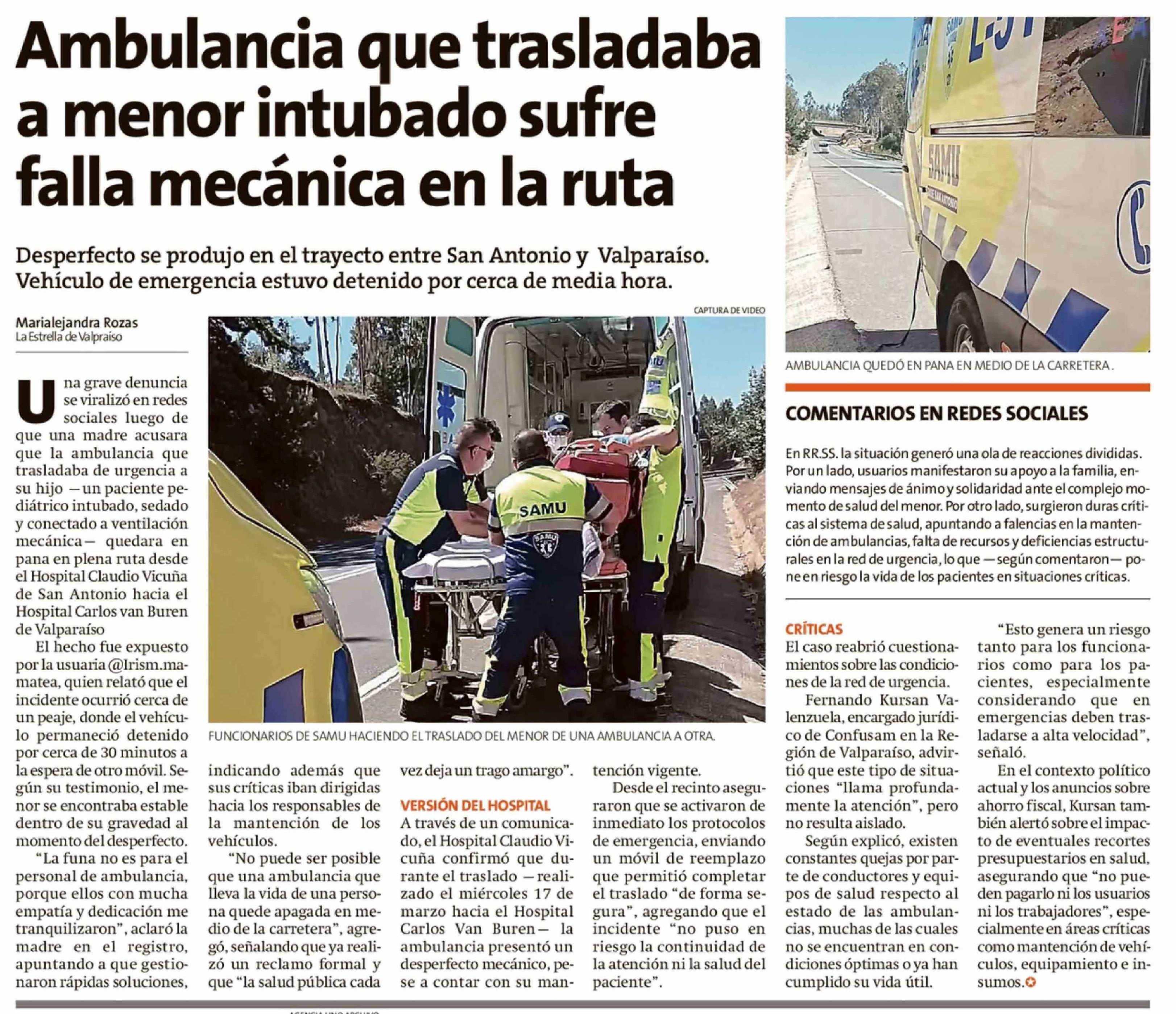 Ambulancia que trasladaba a menor intubado sufre falla mecánica en la ruta