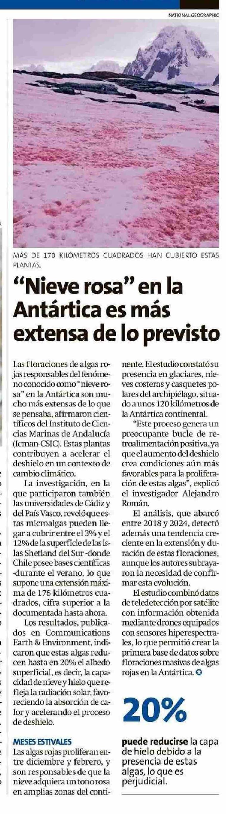 "Nieve rosa" en la Antártica es más extensa de lo previsto