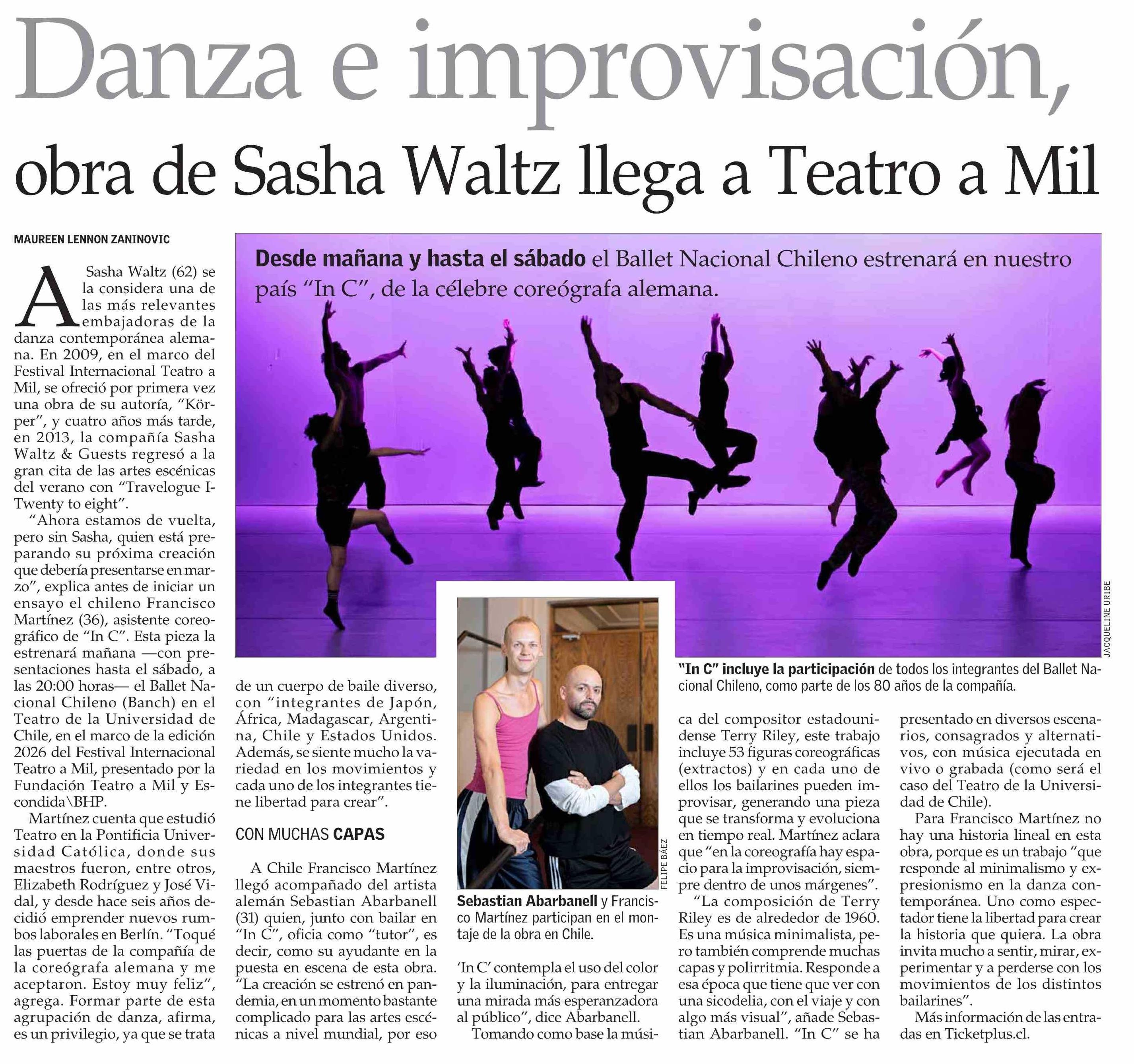 Danza e improvisación, obra de Sasha Waltz llega a Teatro a Mil