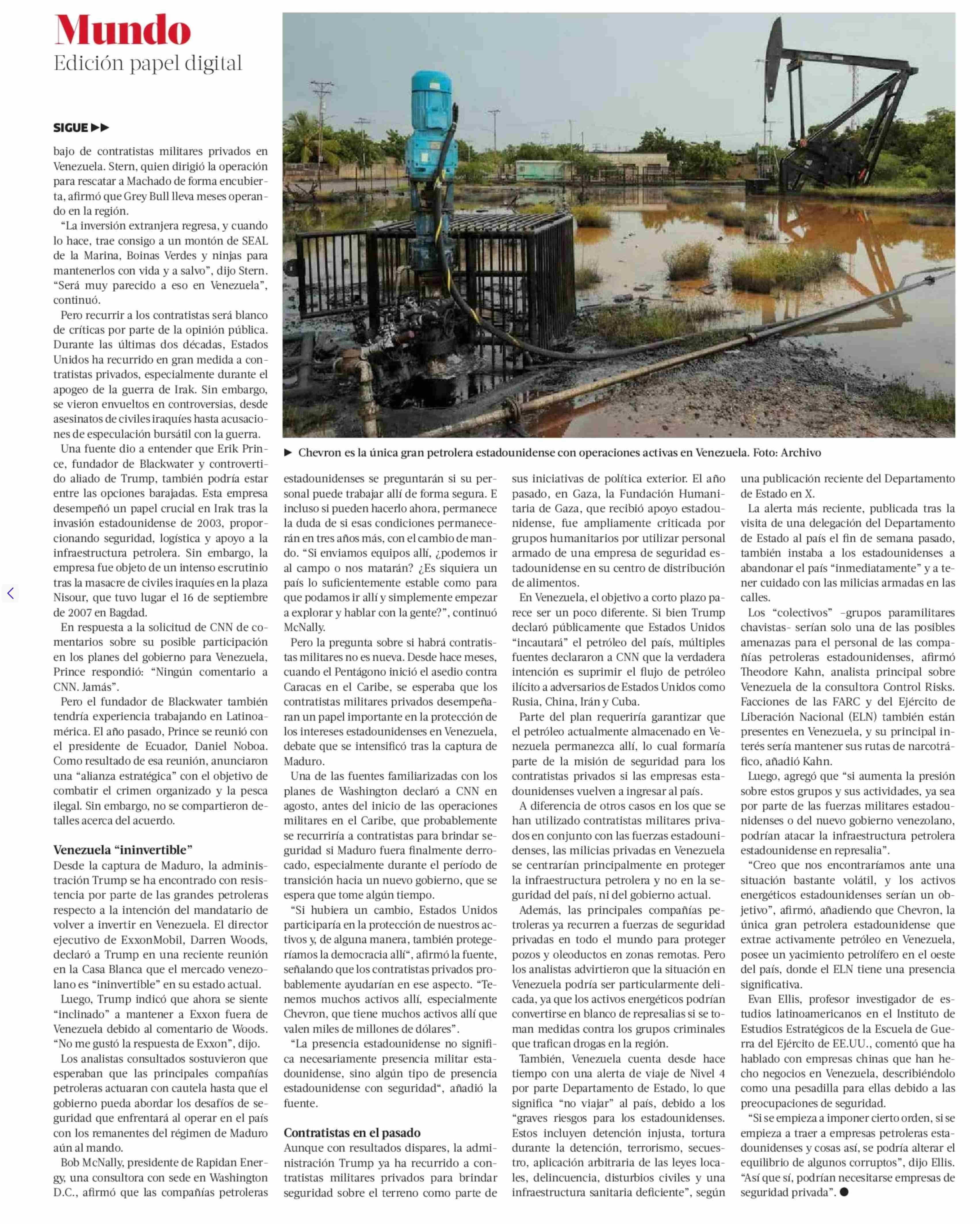 Título: El negocio que se abre para los contratistas militares privados en la protección de activos petroleros en Venezuela