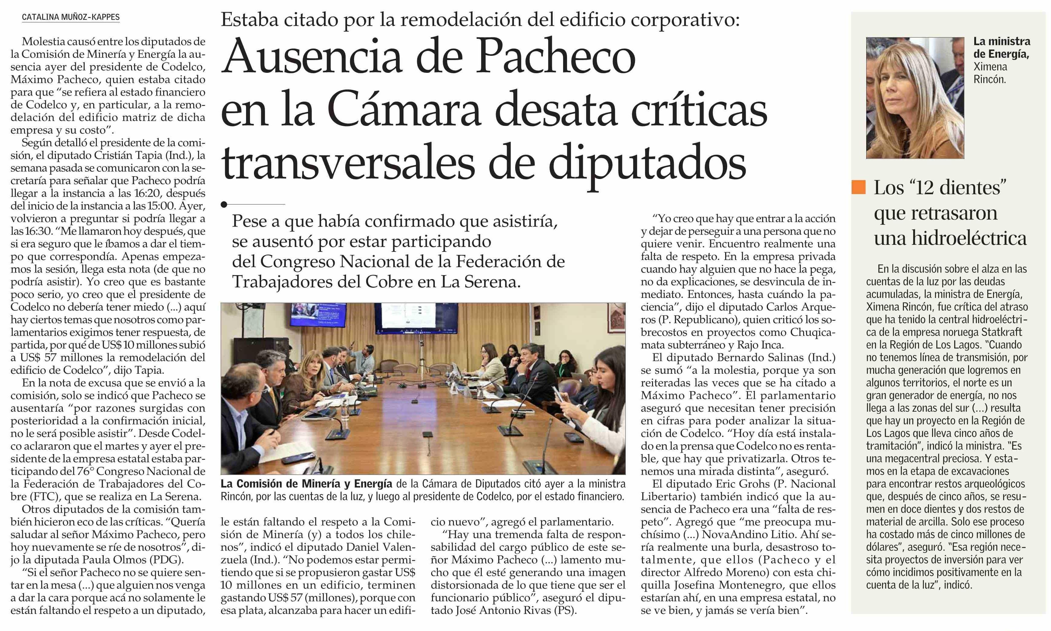 Título: Ausencia de Pacheco en la Cámara desata críticas transversales de diputados