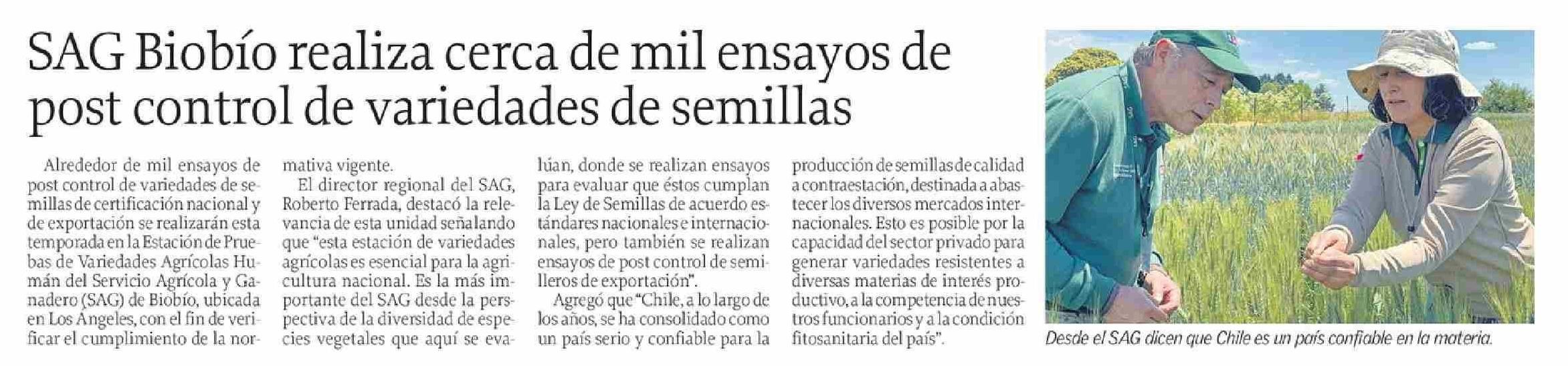 SAG Biobío realiza cerca de mil ensayos de post control de variedades de semillas